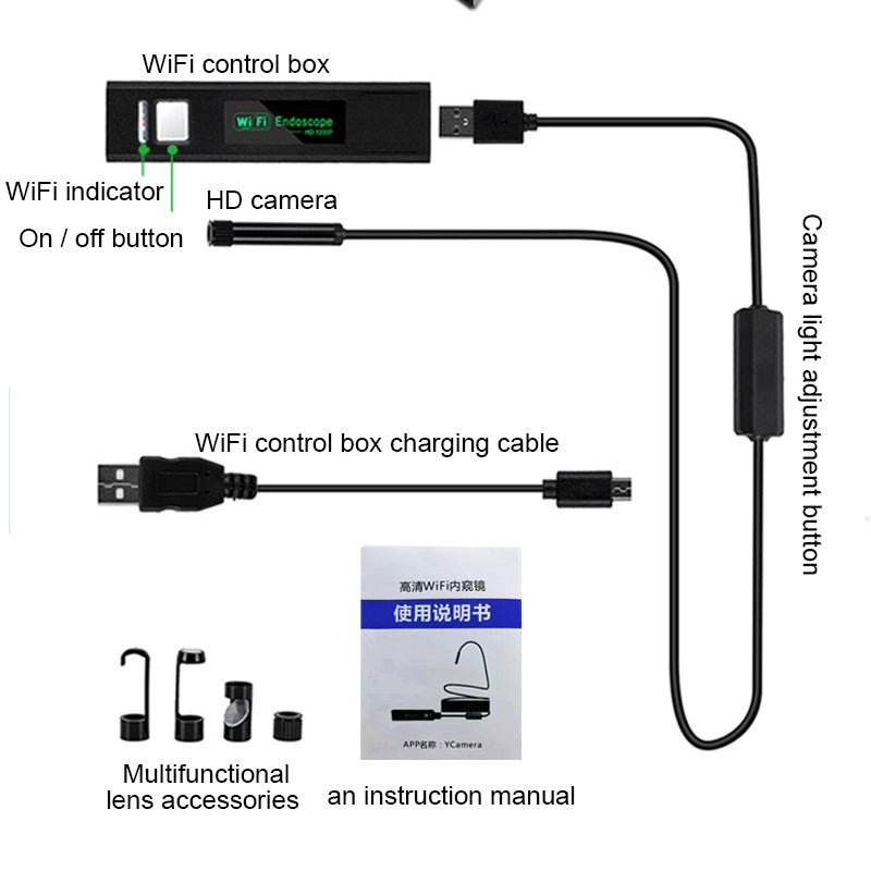 2MP HD 720P 8MM Wifi Endoscope Industrial Pipe Borescope Inspection Camera 5M/16.4FT Flexible Cable