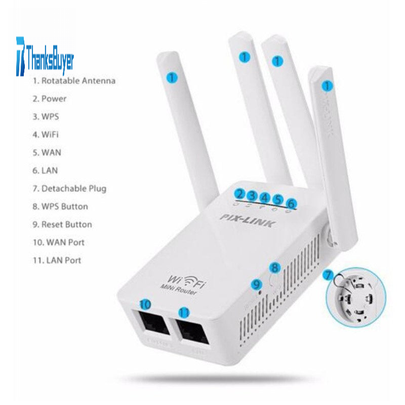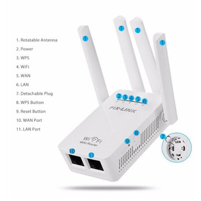 300Mbps Wifi Repeater Wireless Wifi Signal Booster Amplifier Repeater Router w/ 4 Antennas PIX-Link