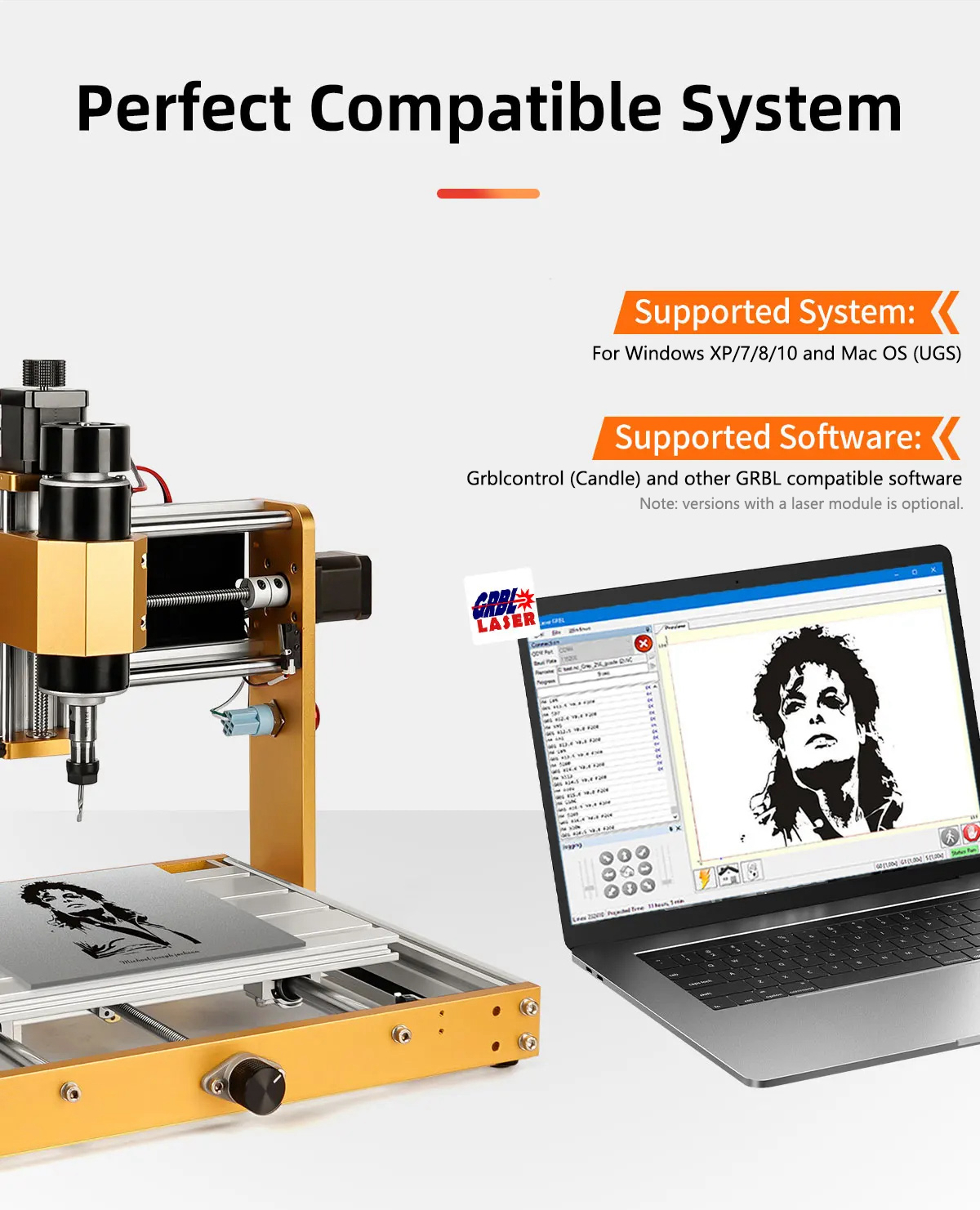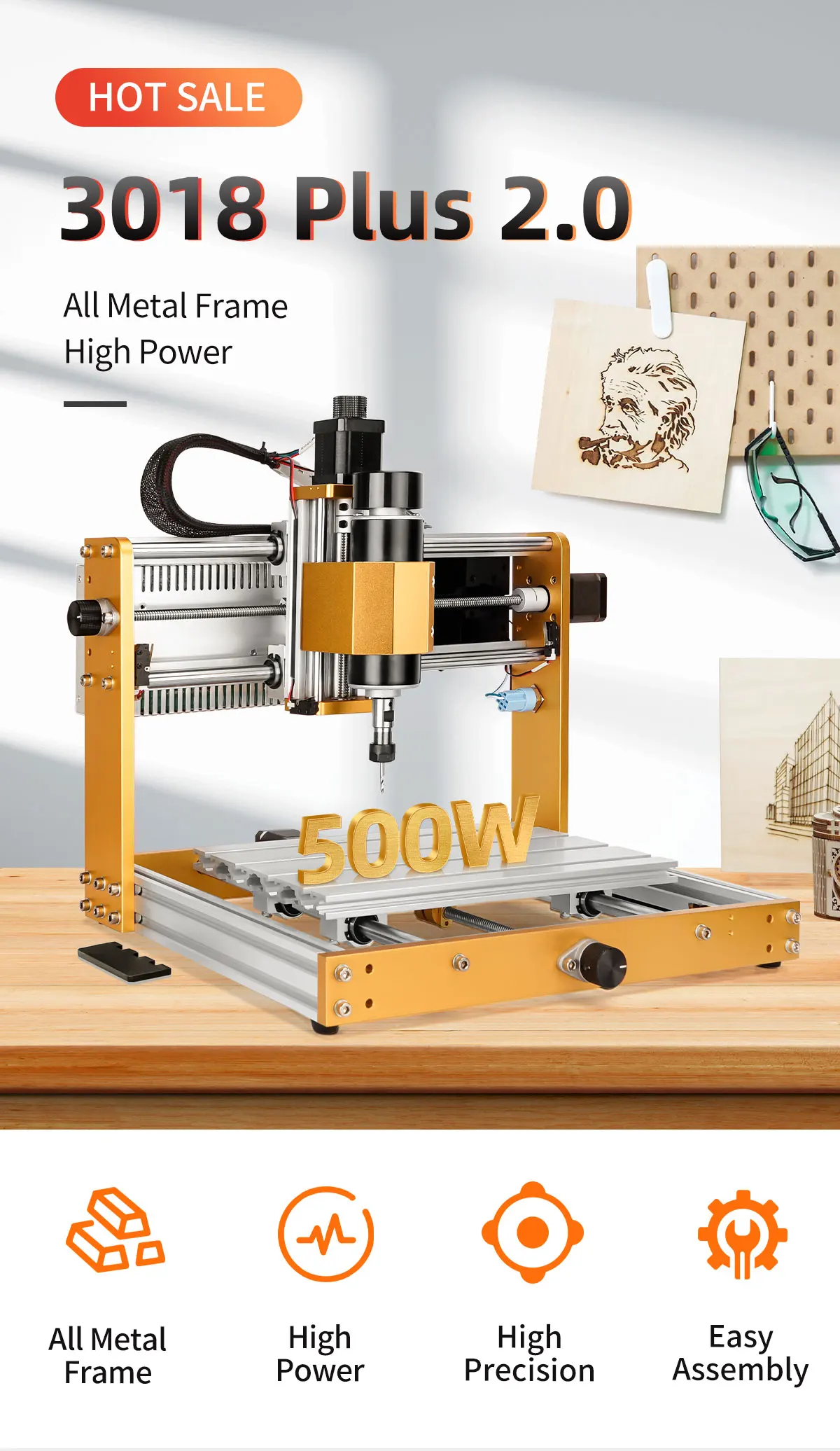 3018 Plus 2.0 3 Axis CNC Router Machine + 500W Spindle + Offline Controller for Plastic Wood Stone