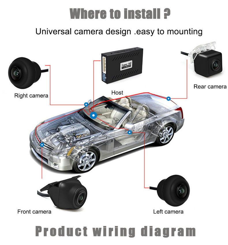 This 360 degree view car camera system is a support technology that assists drivers to park more easily by better understanding the vehicle's surroundings through a virtual bird's-eye view from above the vehicle. It helps drivers visually confirm the vehicle's position relative to the lines around parking spaces and adjacent objects, allowing the driver to maneuver into parking spots with more ease. The system can display the bird's-eye, front and rear views, making it possible to check the vehicle's 360-degree surroundings simultaneously with either the front and the back.