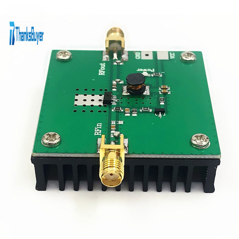 This broadband RF low-power amplifier is suitable for various types of 380-450MHz transmission use, such as wireless remote control and walkie-talkie. When inputting 0.1W, it can output 5.0W@7.2V power. The amplifier is equipped with a heat sink for long-term stable operation.