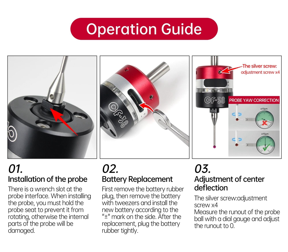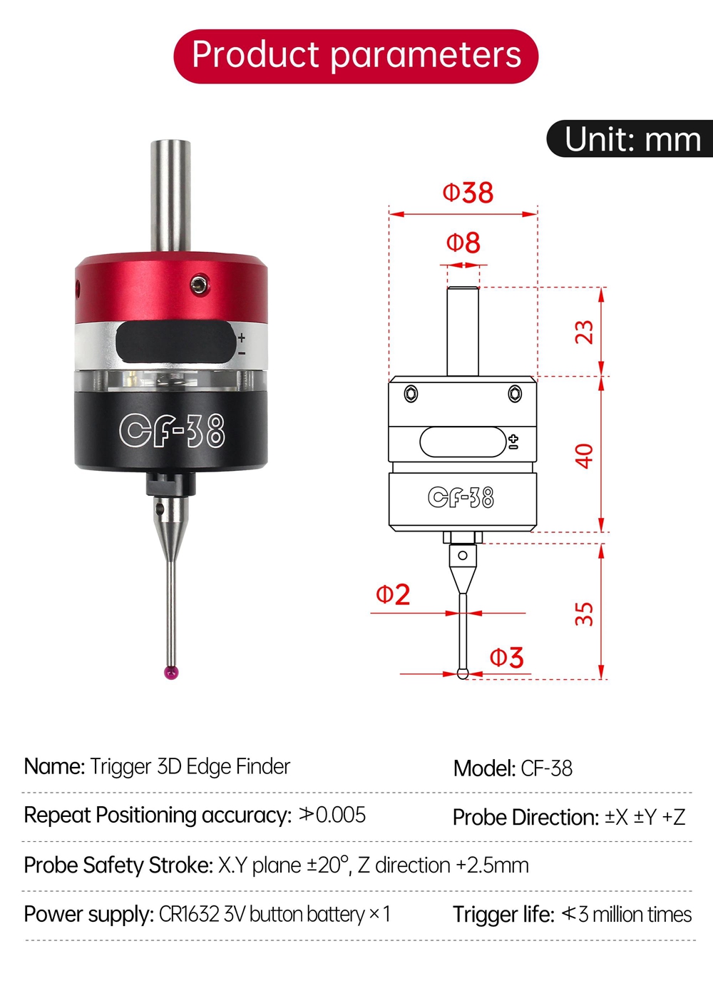 3MM Ball Head Measuring Ruby Probe for CF-38 CNC Trigger Type High Precision 3D Edge Finder