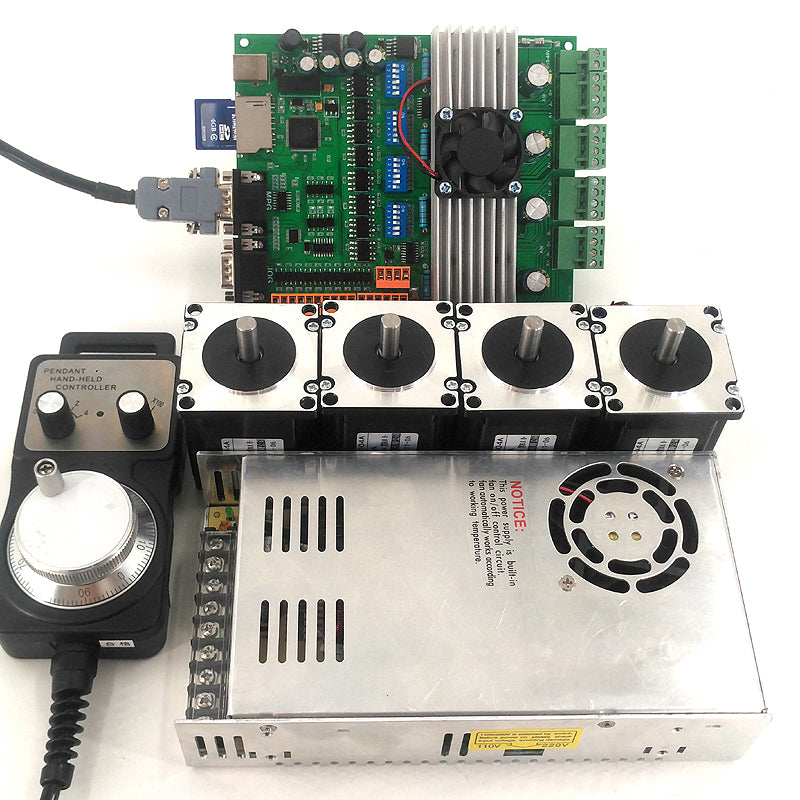 4 Axis CNC Kit USB 4-Axis TB6600 Driver+4pcs Nema23 Stepper Motor+ 1pc Handwheel+1pc Power Supply