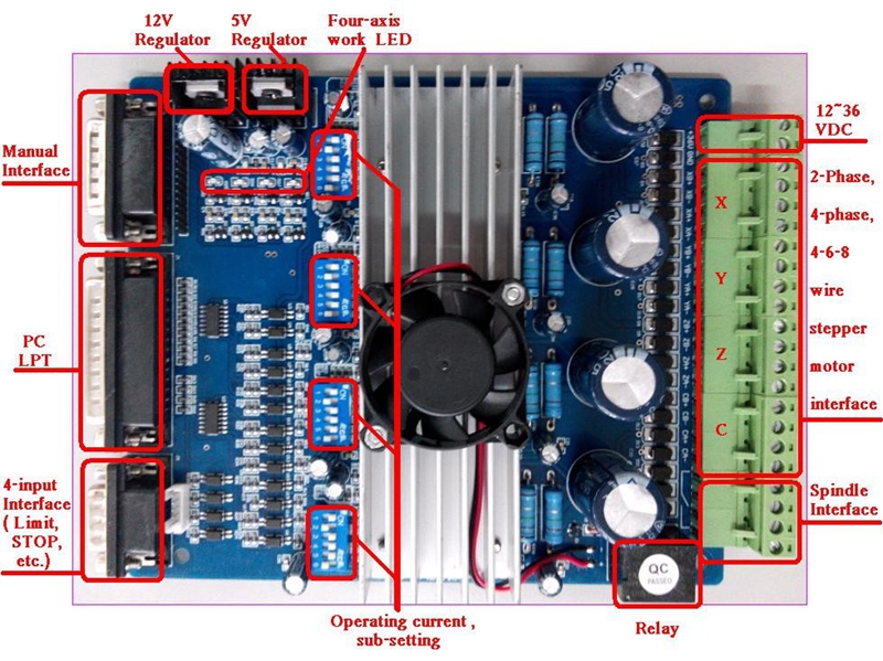 ☆ Adjustable 1.5A-3A drive current settings for each axis - 25%,50%,75%,100% of full current can be set for different stepper motors.