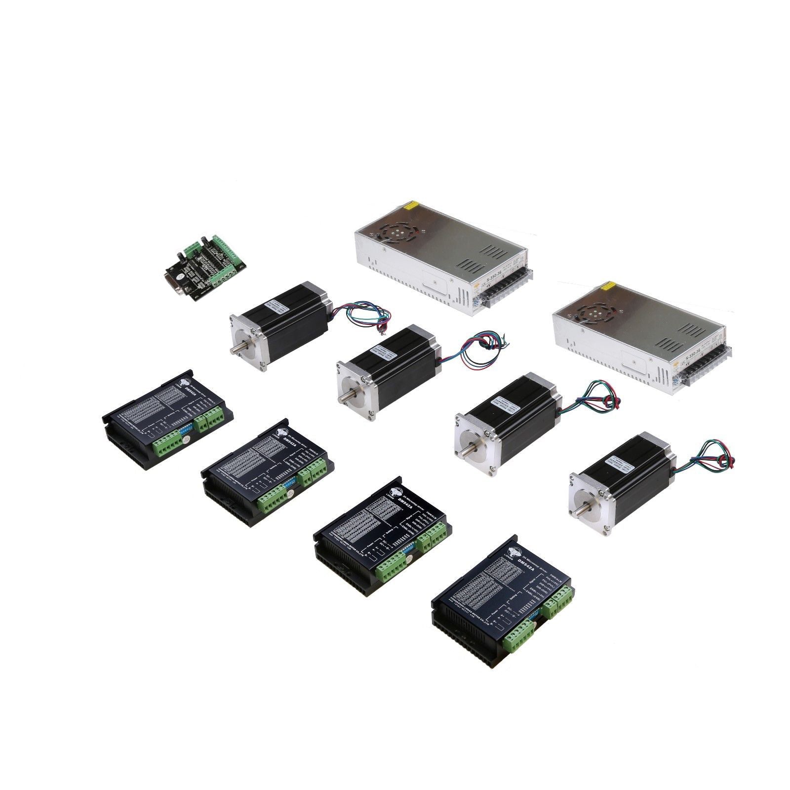 4 Axis Nema23 Kit (4 23HS9430 Stepper Motors+4 DM542A Drivers+2 350W 36V Power Supply+Breakout Board)