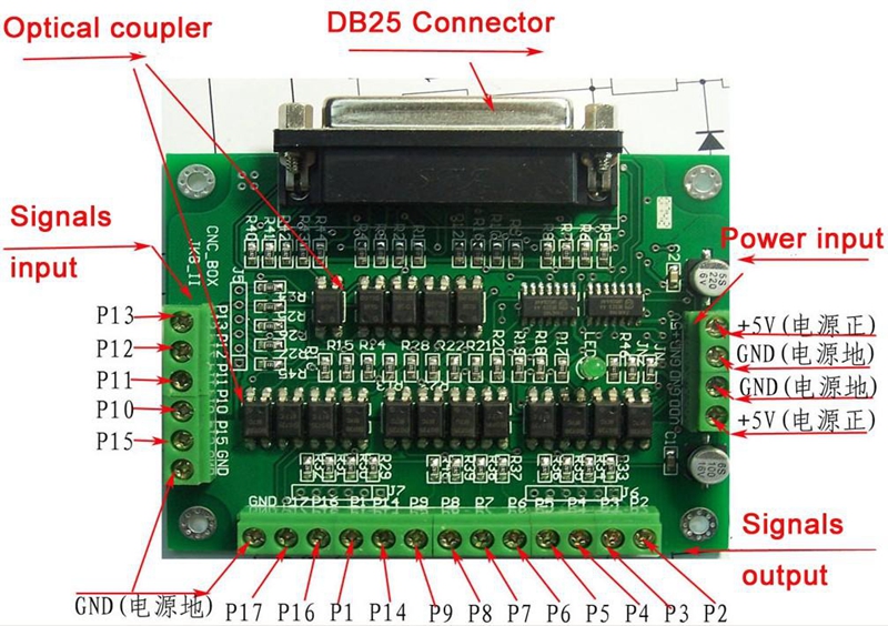- DB25 Output Pin:P1,P2,P3,P4,P5,P6,P7,P8,P9,P14,P16,P17.