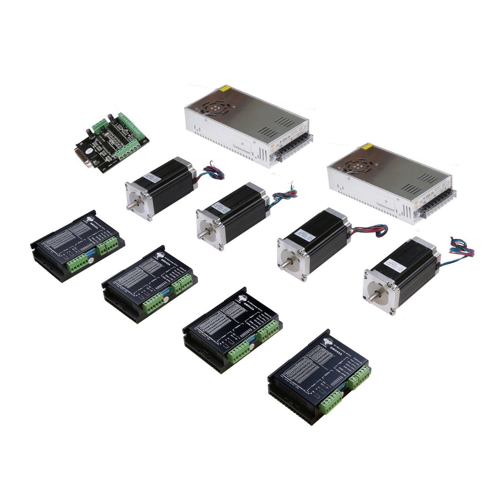 4 Axis Nema23 Kit (4 23HS9430B Stepper Motors+4 DM542A Drivers+2 350W 36V Power Supply+Breakout Board)
