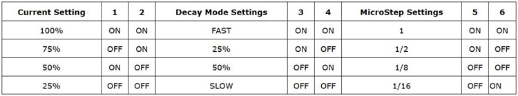 - Adjustable drive current settings for each axis: 25%,50%,75%,100% of full current can be set for different stepper motors