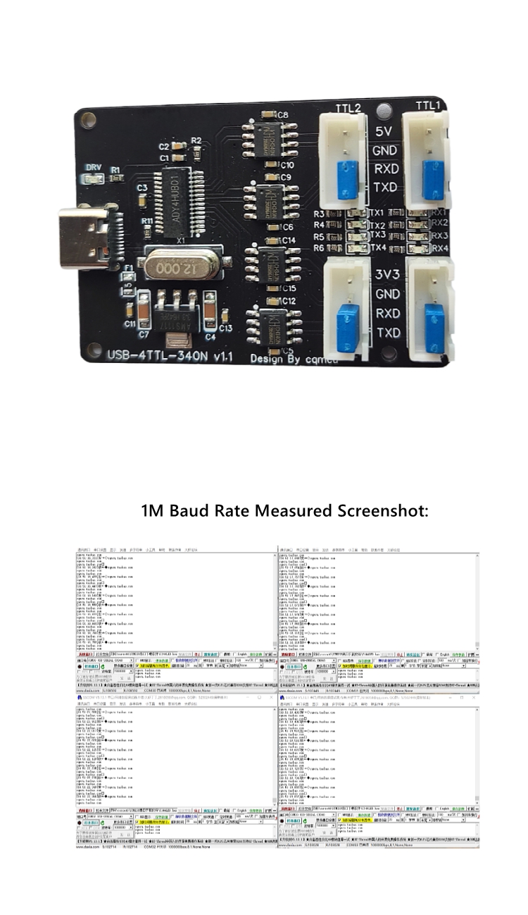 4-Channel USB to TTL Serial Module 4-Channel Independent TTL Type-C Interface Support 1200-2Mbps Communication Speed
