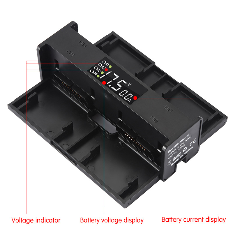 -With 4 battery sockets to charge up to 4 drone batteries simultaneously.