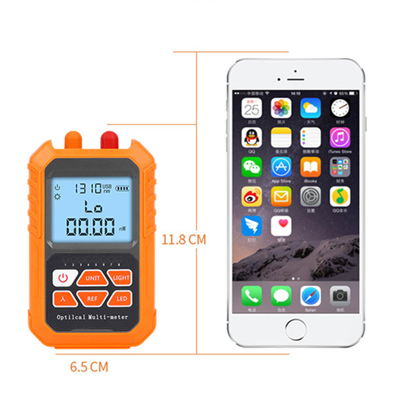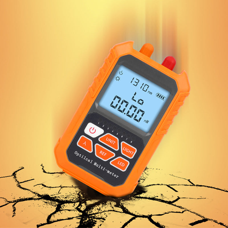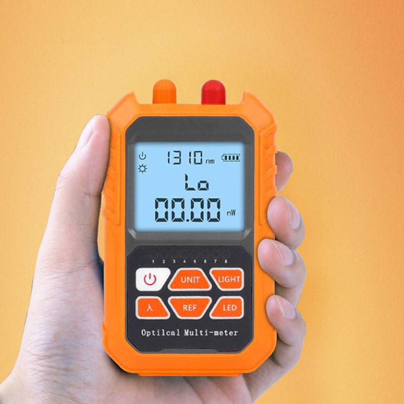 - Integrated Optical Power Meter + VFL + Cable Tester testers are mainly used for continuous optical signal power measurement, optical fiber link loss testing and optical fiber line on-off testing. It is controlled by a single chip microprocessor with complete functions. - Widely used in optical cable construction and maintenance, optical fiber communication, optical cable sensing, optical CATV and other fields. The red-light integrator of optical power meter can be well protected by using embedded detectors and lasers. The tester has compact shape, also with RJ45 Cable testing, automatic shutdown function, three red light modes, backlight display, wavelength memory function, optical fiber work identification, support user calibration, wide test range, support lighting.