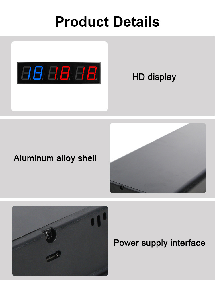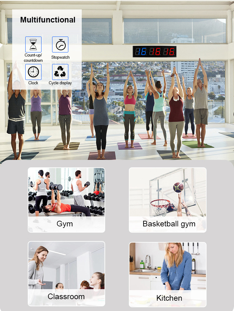 4" 6-Digit Aluminum Alloy Gym Timer Clock with Remote Control for Gym Meeting Room and Kitchen