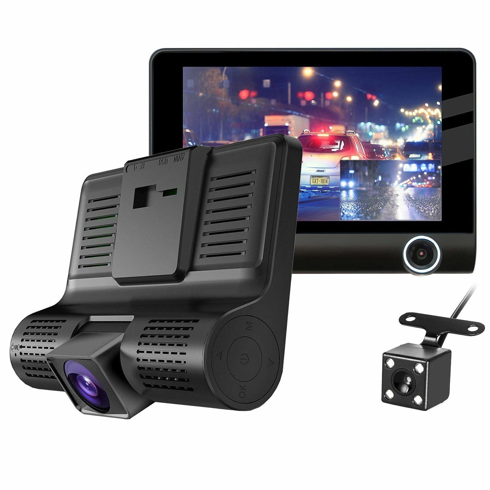 4" HD 1080P 3 Lens Car DVR Dash Cam Recorder 170° Vehicle Video Recorder Rearview Camera