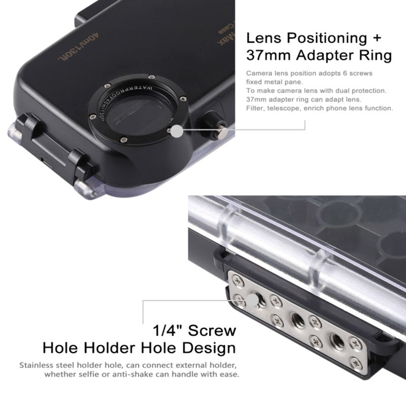 40m/130ft Waterproof Phone Case Diving Phone Case Housing Video Taking For iPhone XS Max PU9006