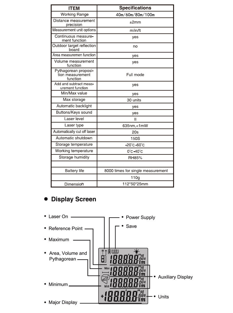 40M/131FT Laser Distance Meter Digital Laser Rangefinder Diastimeter Tool T40