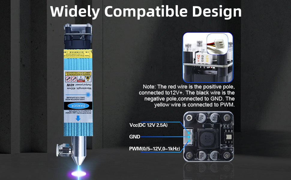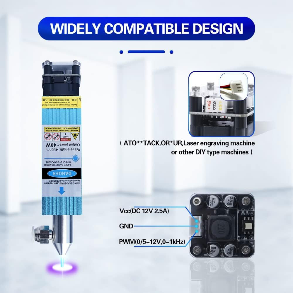 40W 450nm Laser Module Laser with 5.5W Optical Output Power for CNC Laser Engraver and Laser Cutter