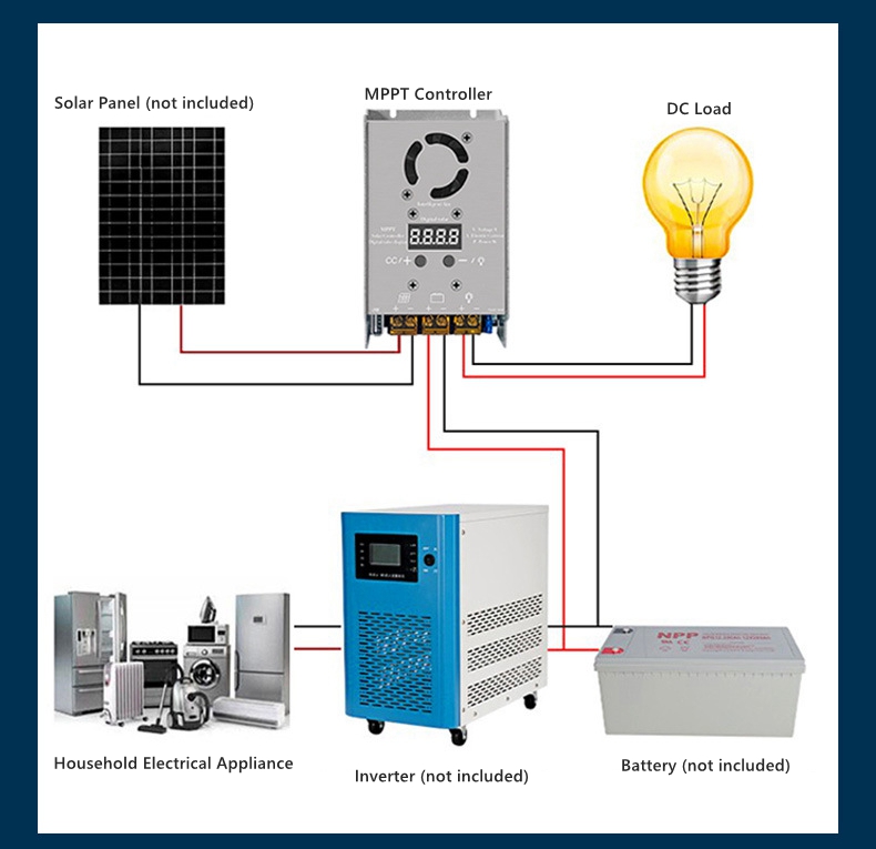 - Installation steps: First connect the solar panel to the controller, and then connect the storage battery. The input and output of the controller are both red positive and black negative.