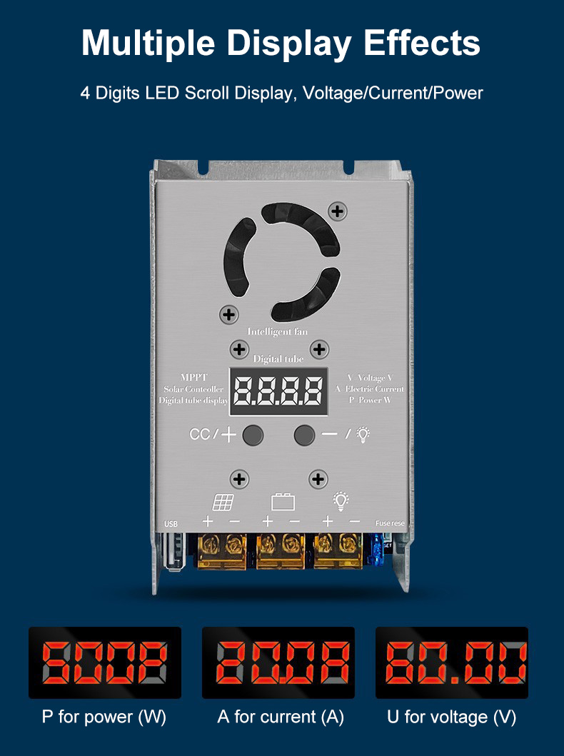 450W 20A 12V 24V Step-down MPPT Solar Controller LED Display Intelligent Cooling Fan for Lead-acid/Lithium/Gel Battery