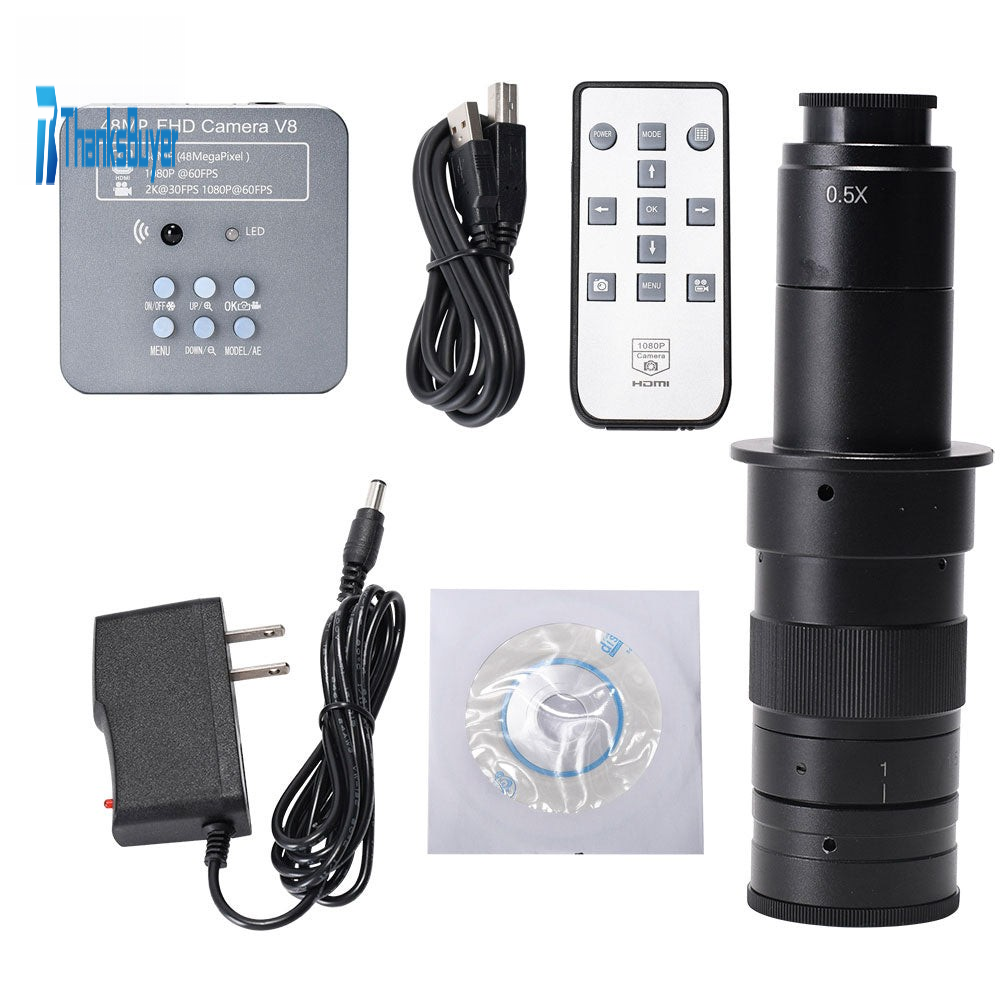 48MP FHD Camera V8 USB Microscope Camera 1080P 2K 60FPS w/ 180X C-Mount Lens For Welding Repair