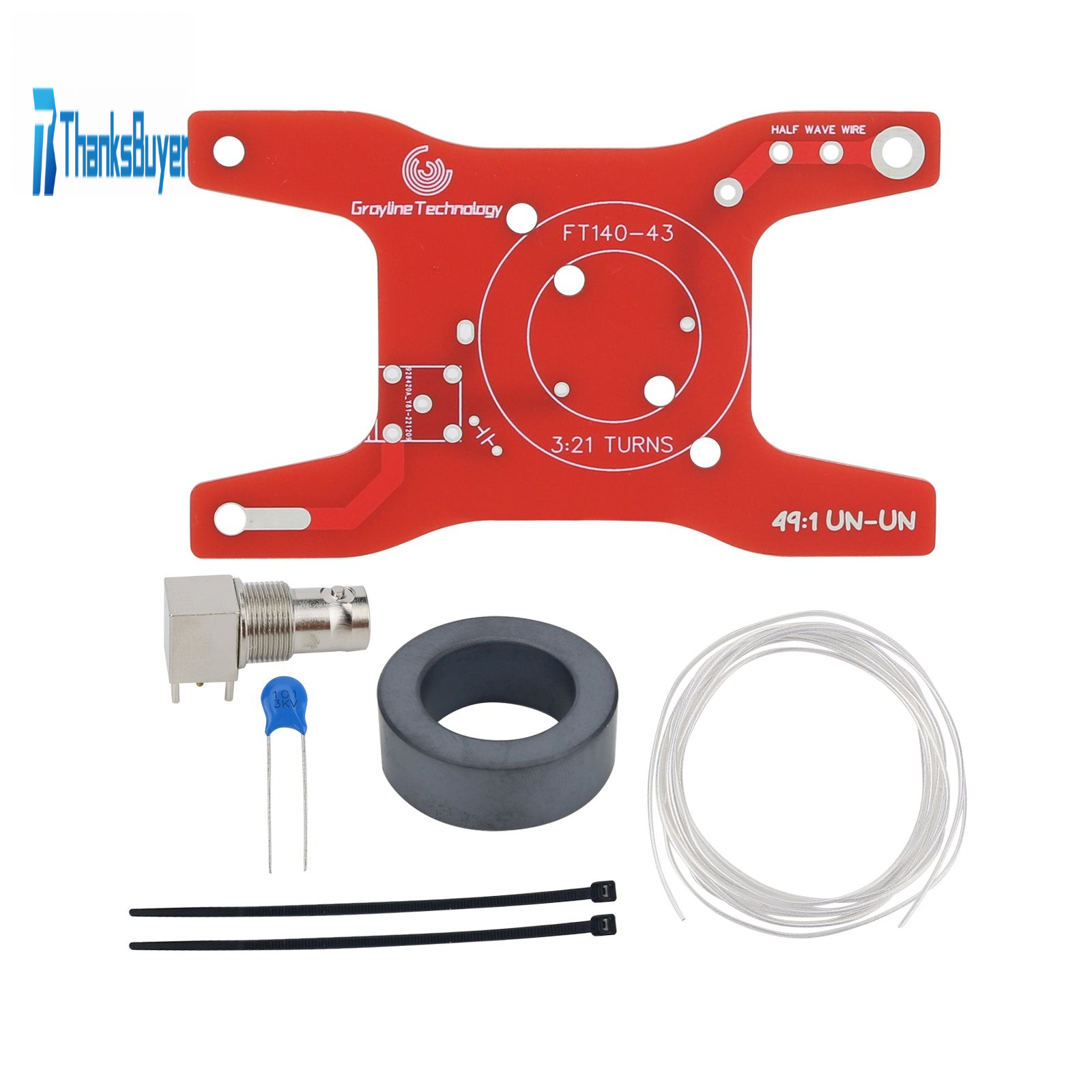 49:1 UN-UN Balun Kit DIY Unassembled Shortwave Feed Antenna Mini Portable FT140-43 Magnetic Ring 50W Four Band EFHW