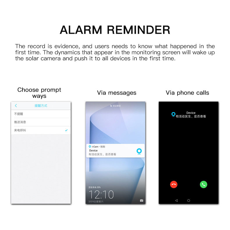 - Alarm function: APP alarm: message prompt/call prompt