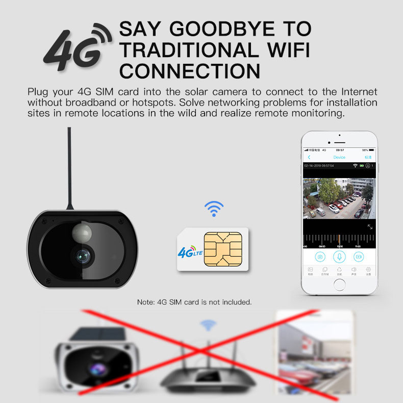 4G Solar Power Outdoor Camera 2MP IP66 Security Camera w/ Solar Panel (Southeast Asia/South America)