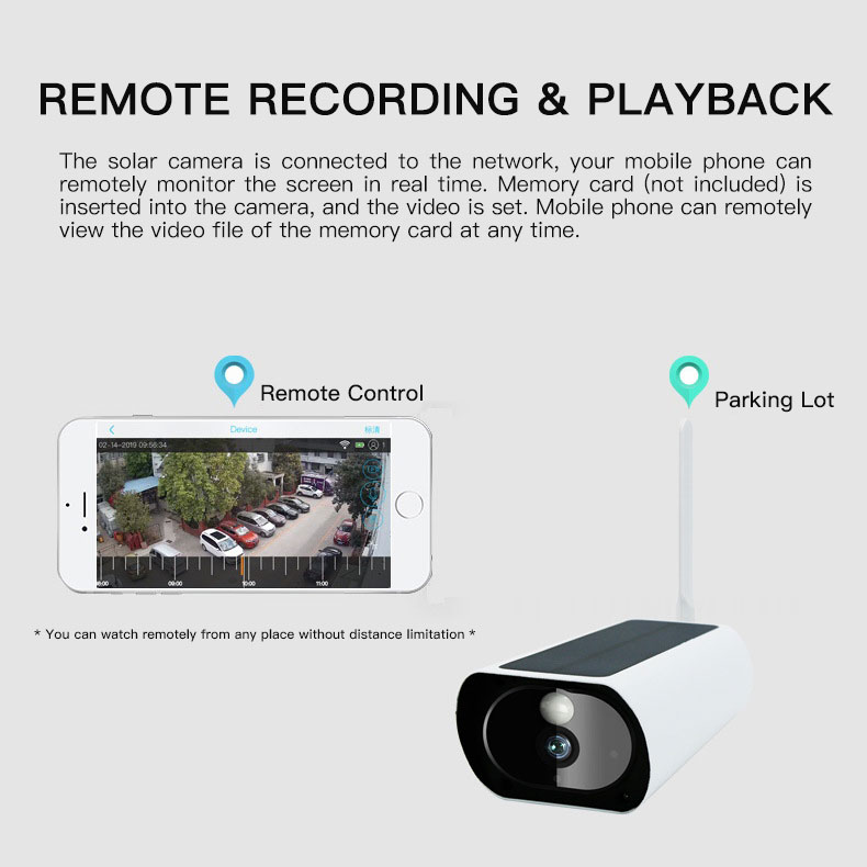 Solar charging and the dormant state of the camera can ensure the camera's long-term operation and can be used indefinitely. The less the flow of people, the more sufficient environmental electricity.