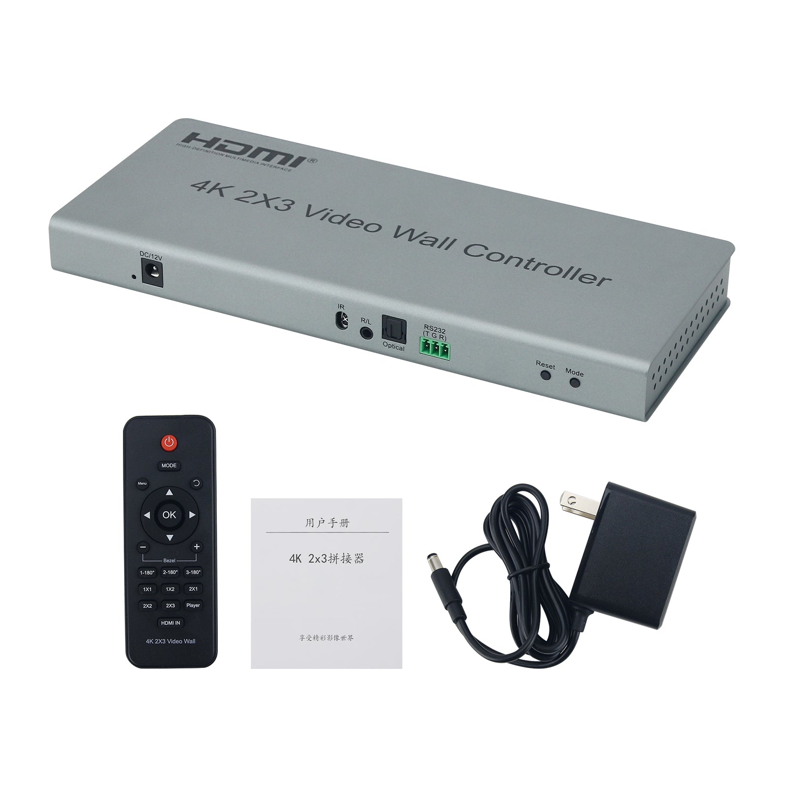 - HDMI 2x3 video wall controller: It supports HDMI 4K at 30Hz. Multiple splicing modes are supported. With independent audio output.