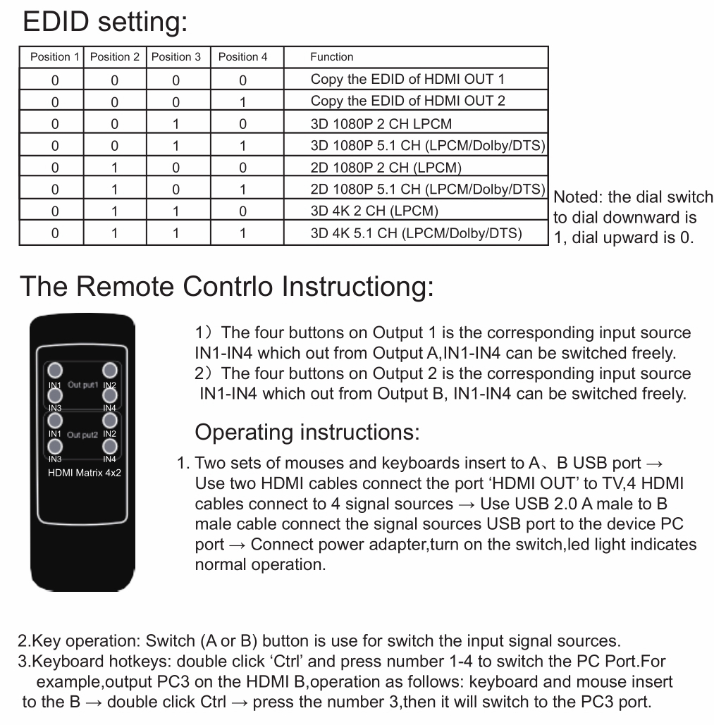 - 4 HDMI inputs switch and split to 2 HDMI displays