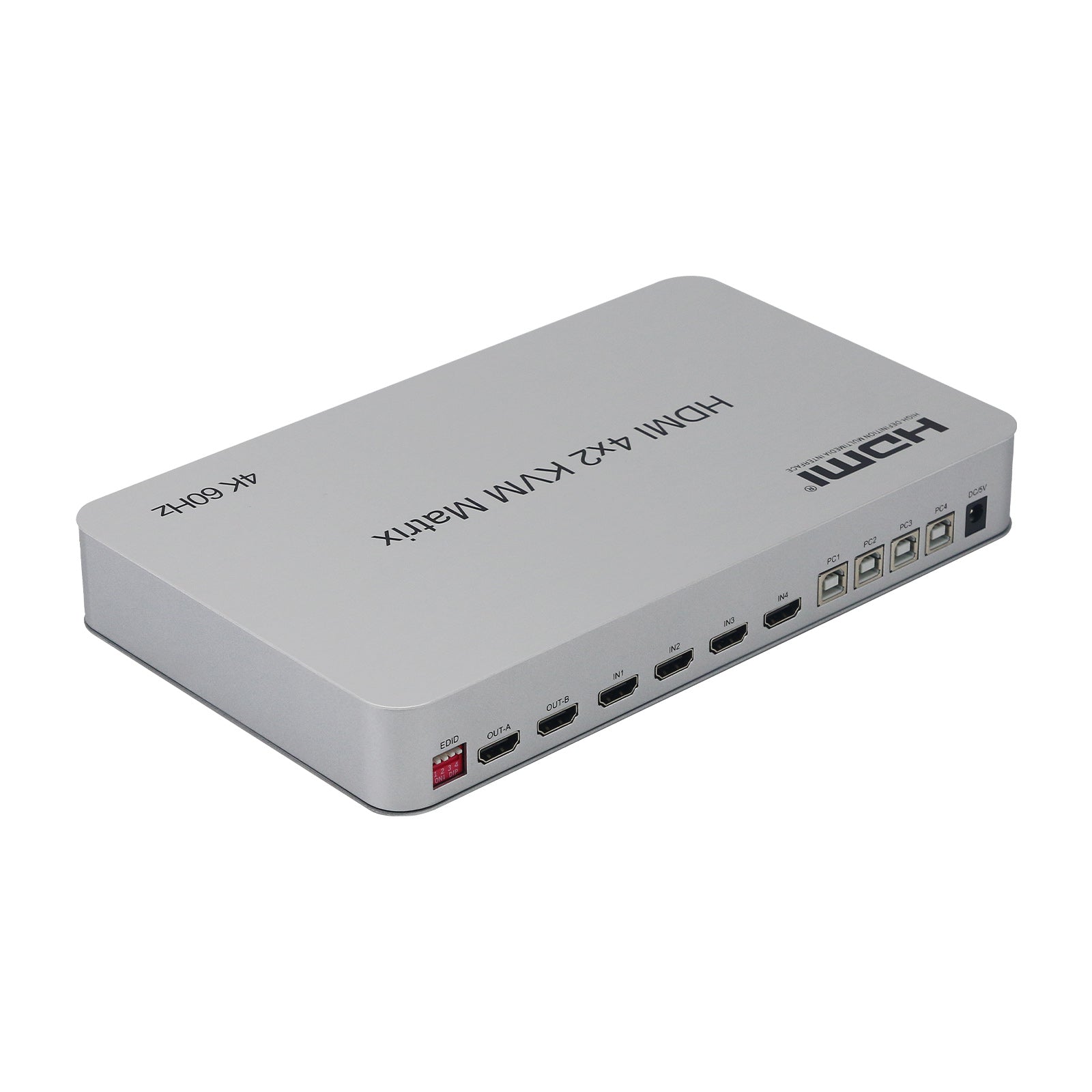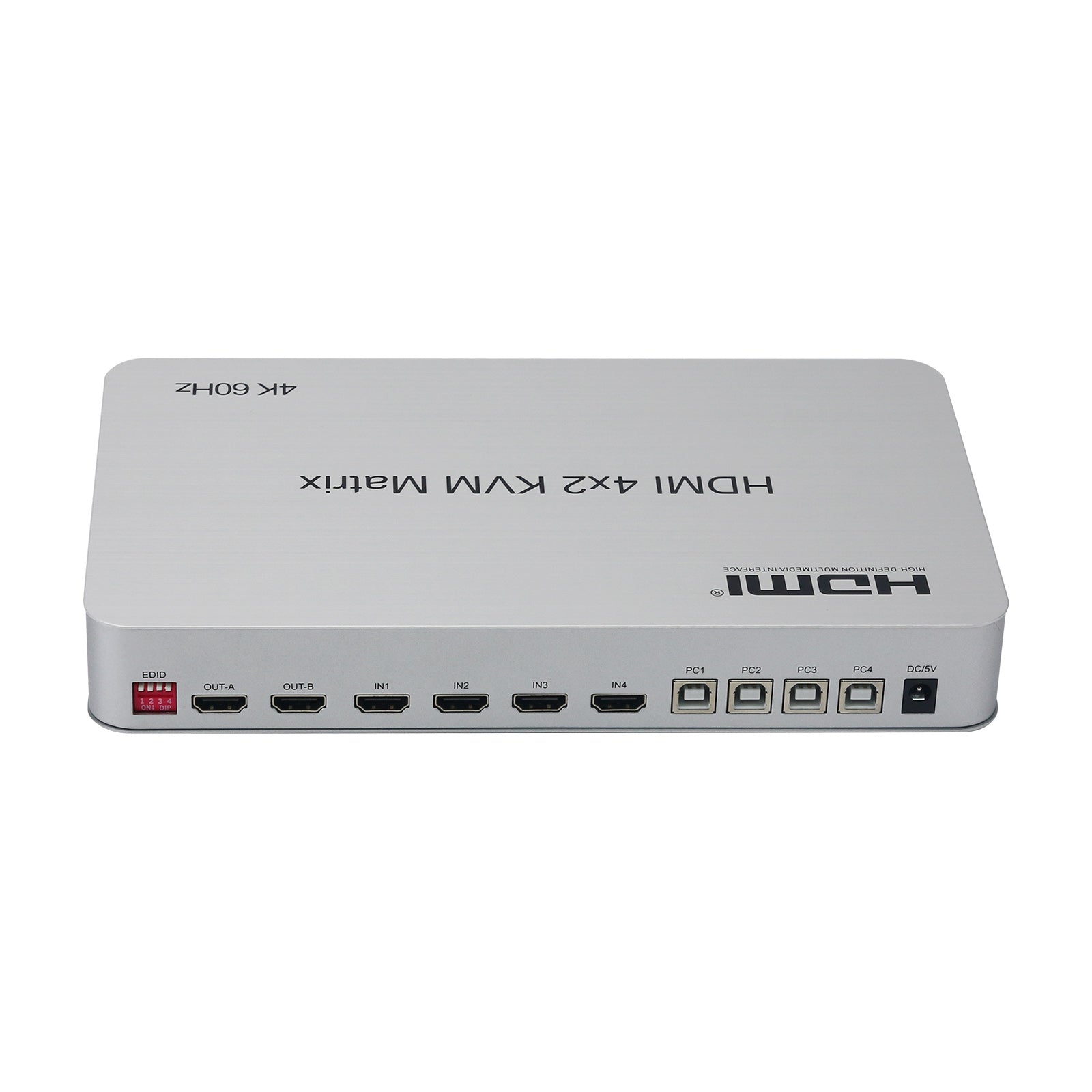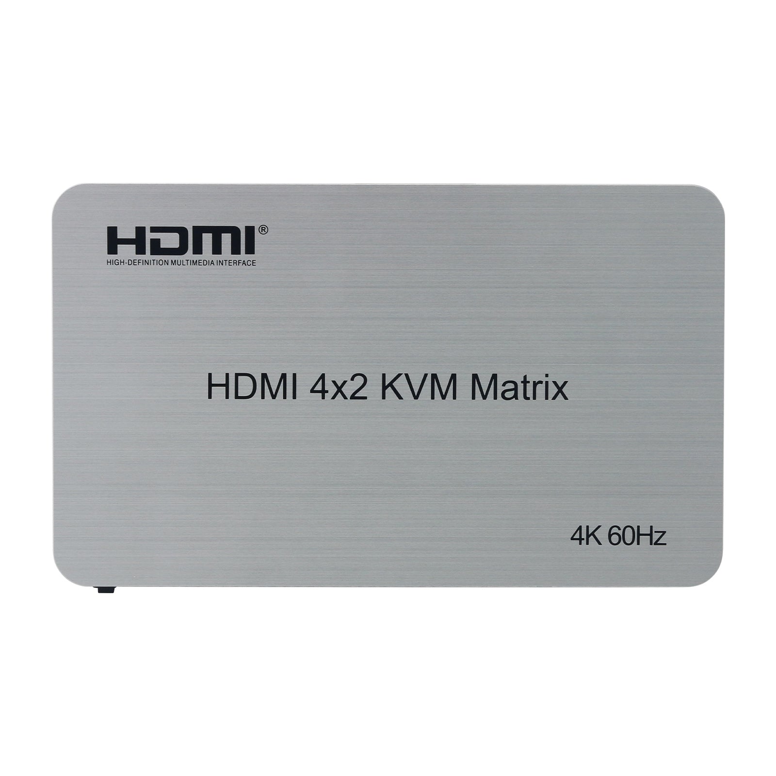 4K 60Hz HDMI Matrix Switch HDMI 4x2 KVM Matrix Supports Keyboard Mouse Speakers Headphones PC