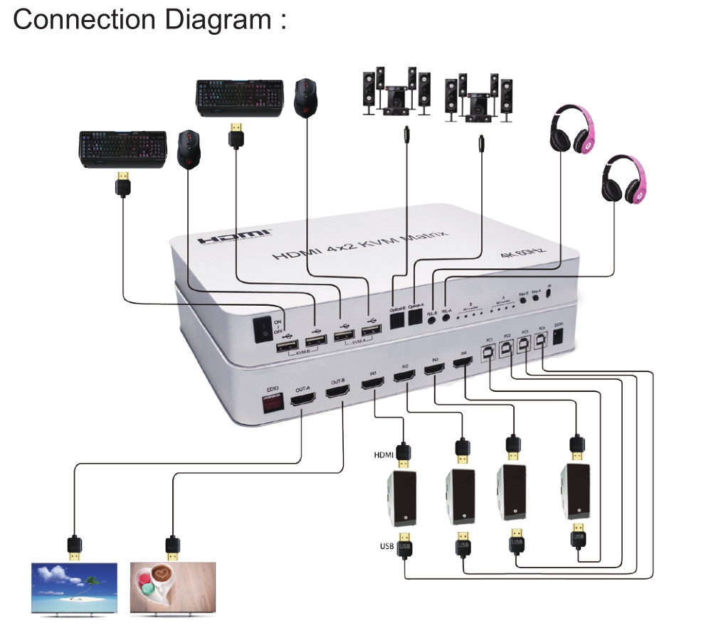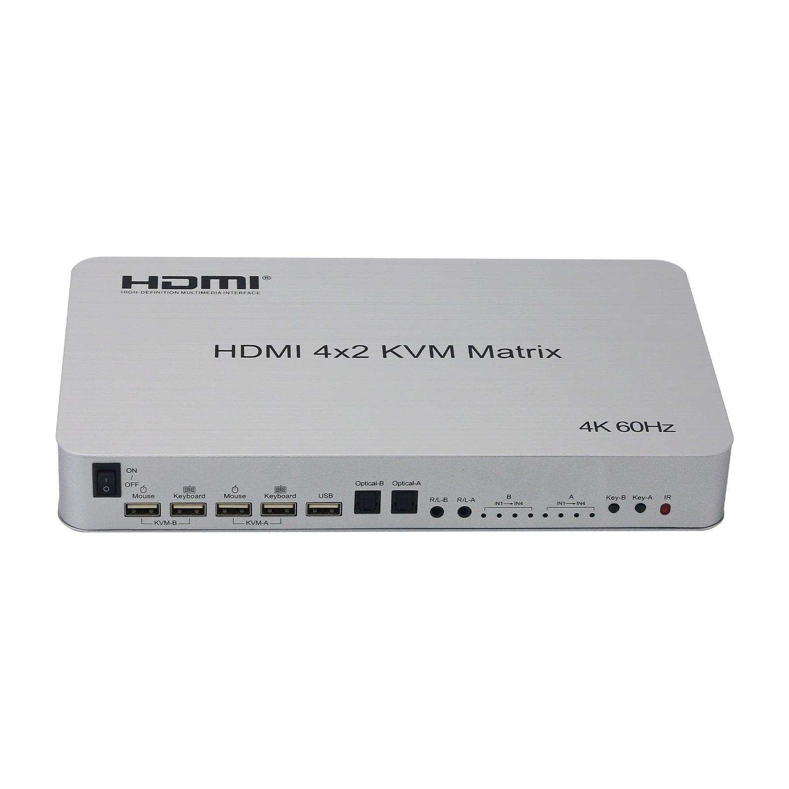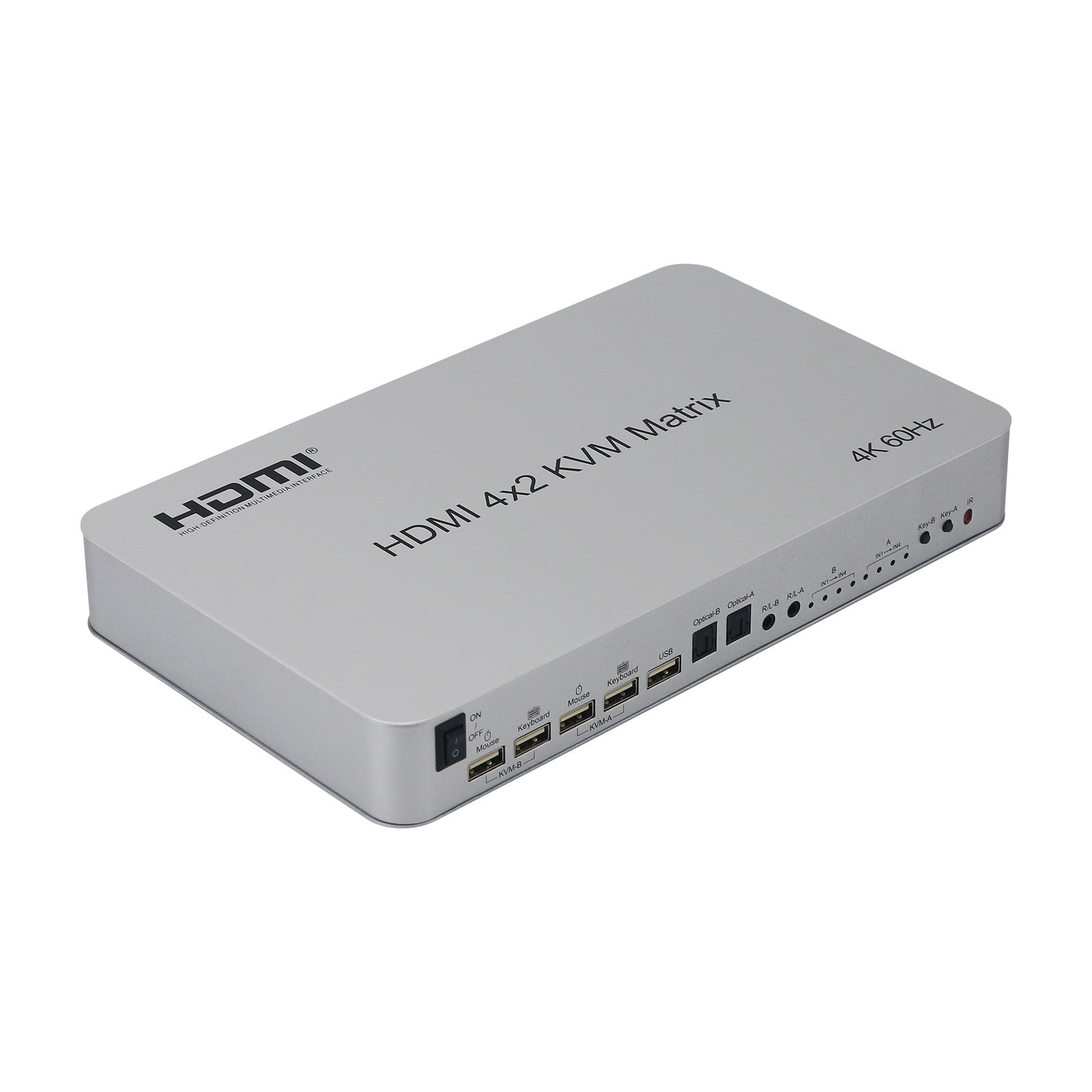 4K 60Hz HDMI Matrix Switch HDMI 4x2 KVM Matrix Supports Keyboard Mouse Speakers Headphones PC