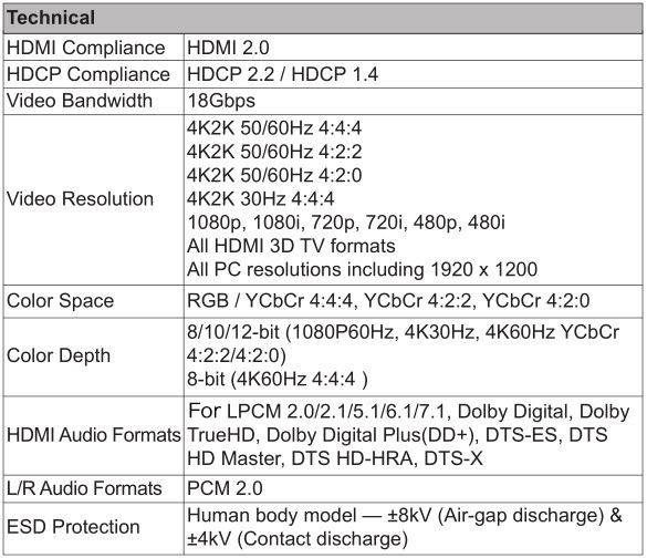 - HDMI 2.0, HDCP 2.2 / HDCP 1.4 and DVI 1.0 compliant