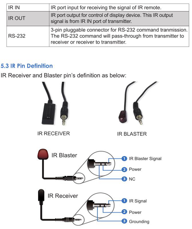 - 2 x 20~60KHz IR Receiver Cables (1.5 meters)