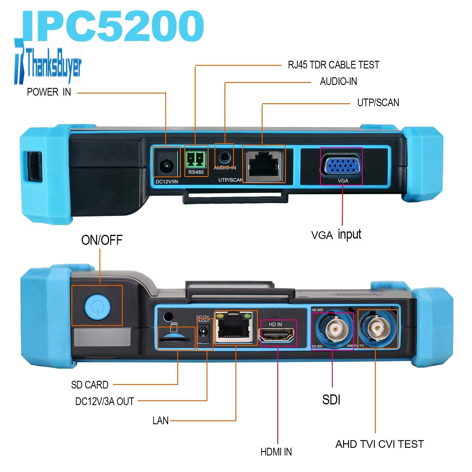 4K IP Camera Tester Security Camera Tester For IP AHD CVI TVI VGA & HDMI Input SDI IPC-5200 Plus