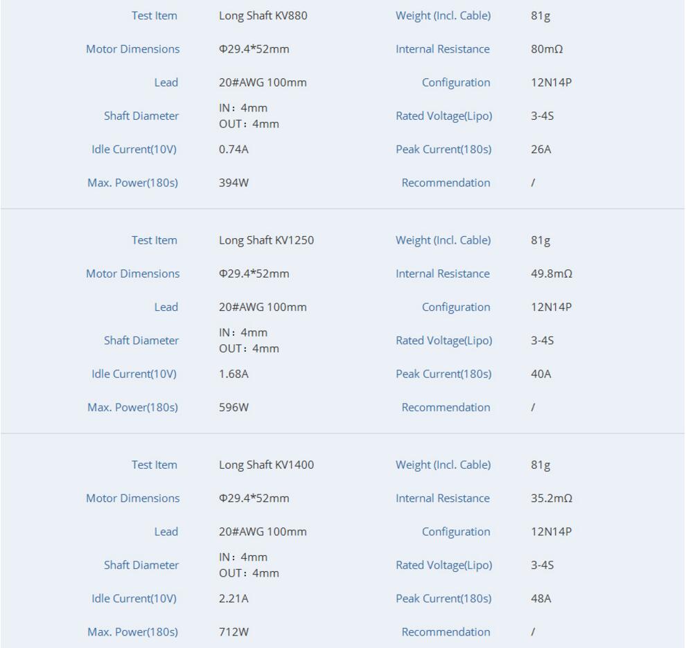 4PCS 1250KV T-Motor Brushless Motor Long Shaft For Trainer Slider Small 3D (AS2317 KV1250)