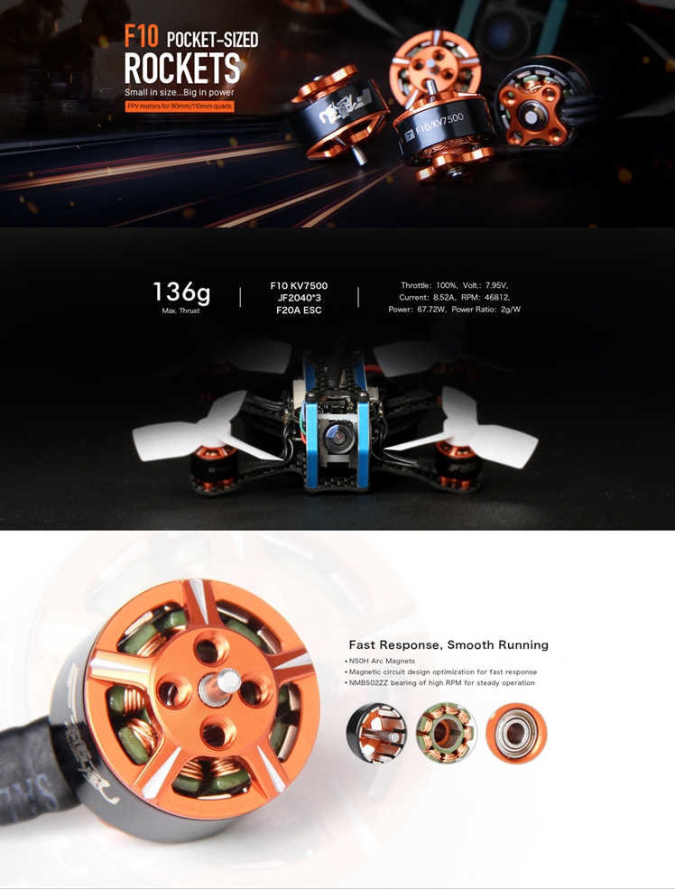 4pcs F10 7500KV RC Brushless Motor 2-3S for 90mm 110mm FPV Racing RC Drone Quadcopter