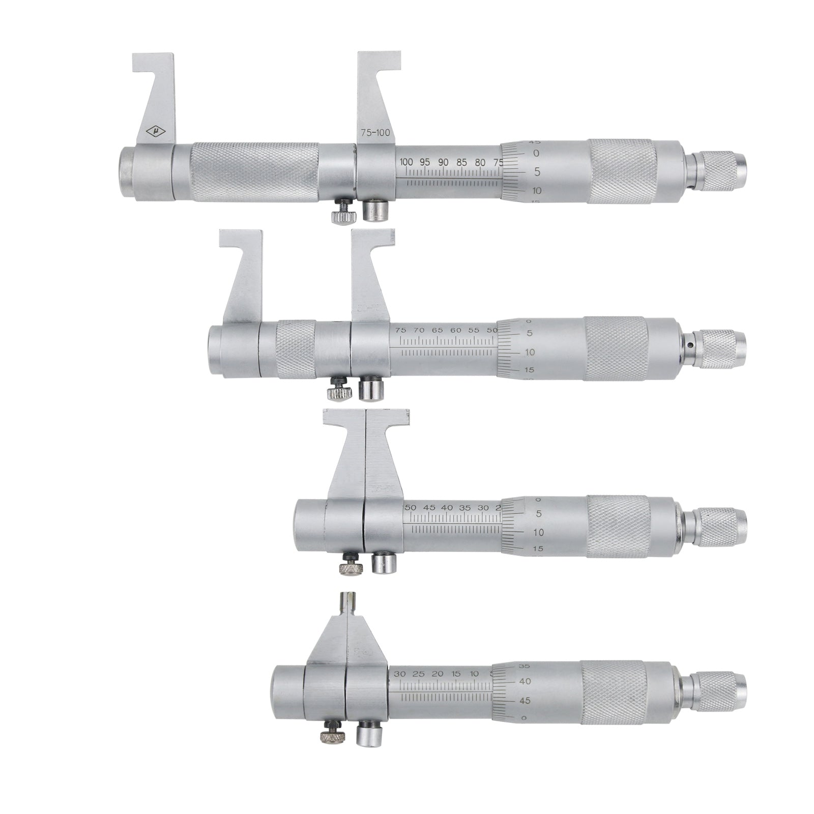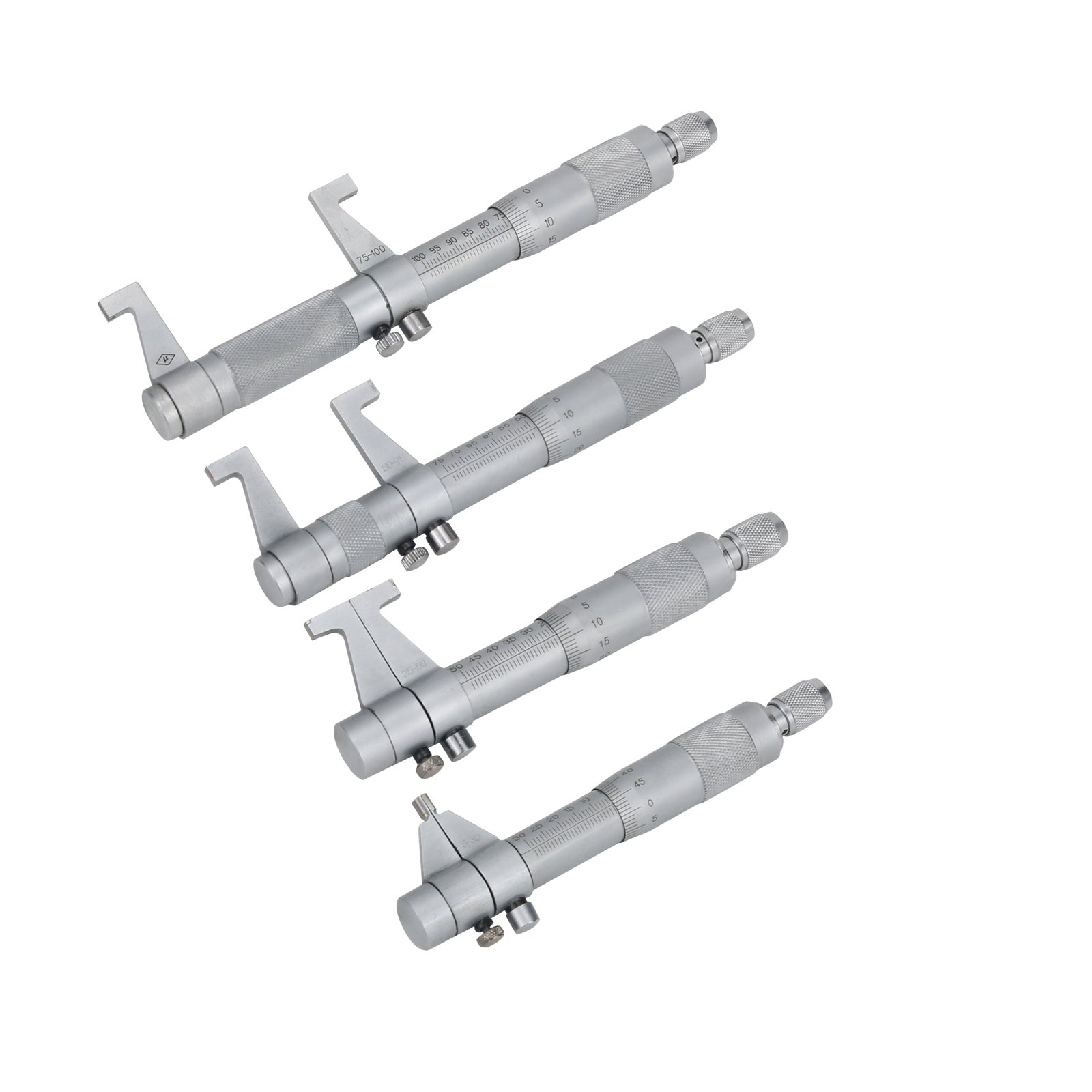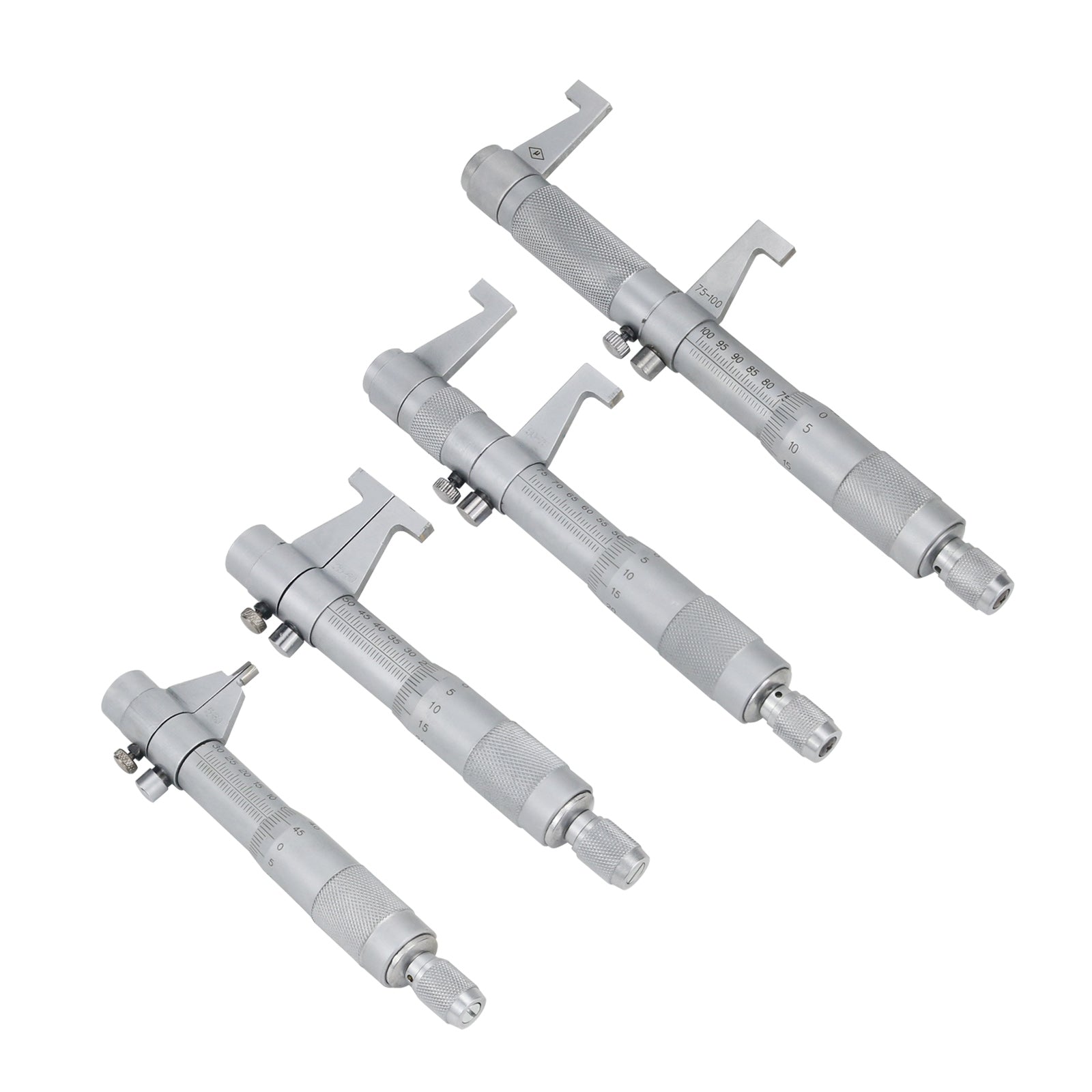 4Pcs Inside Micrometer Set 5-30mm/25-50mm/50-75mm/75-100mm 0.01mm Metric Carbide Ratchet Screw Gauge Micrometers Measuring Tools