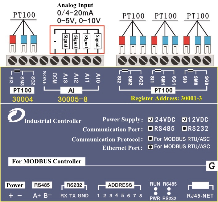 4PT100 + 4AI Industrial Controller Data Acquisition For MODBUS TCP-518B [Ethernet + RS485 + RS232]