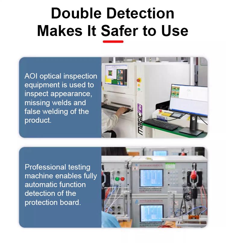 - Double detection makes it safer to use: AOI optical inspection equipment is used to inspect appearance, missing welds and false welding of the product. Professional testing machine enables fully automatic function detection of the protection board