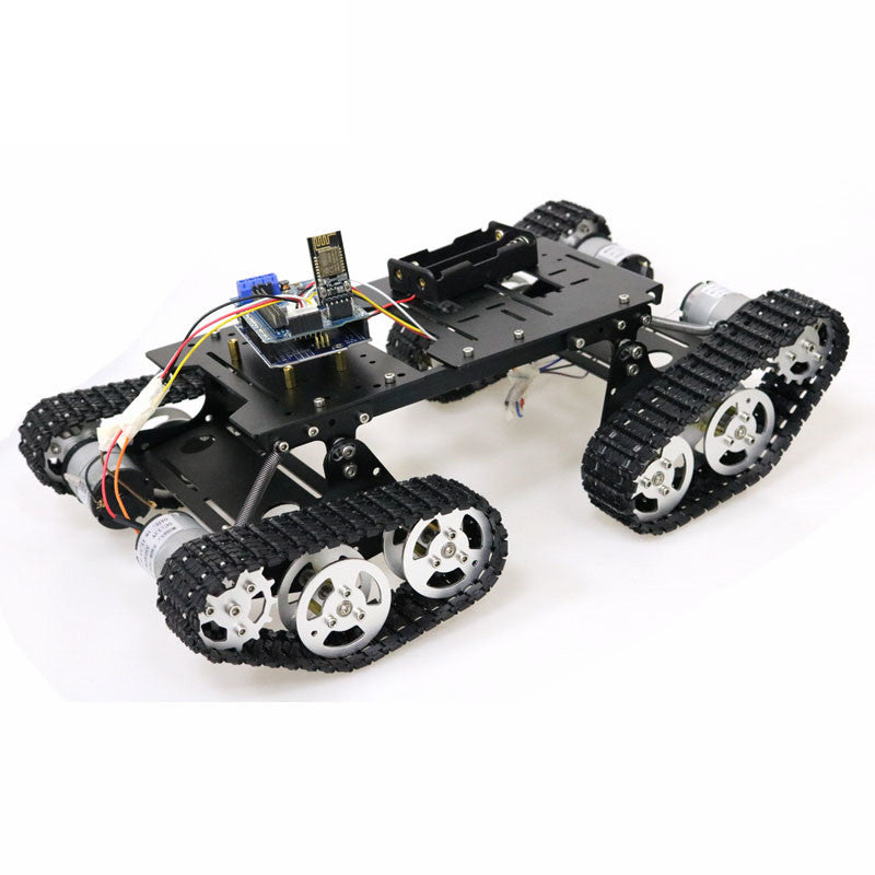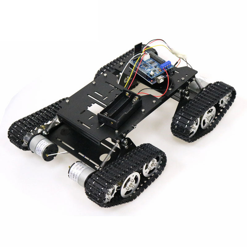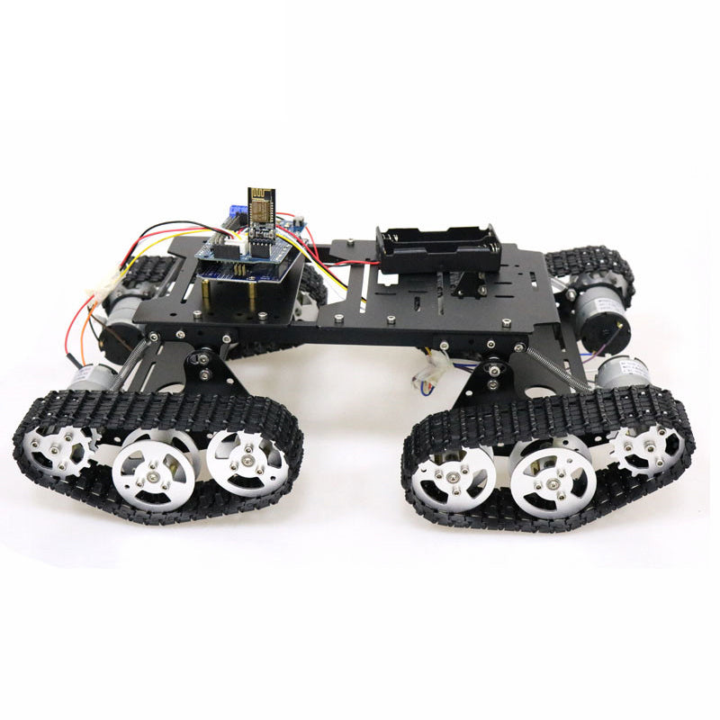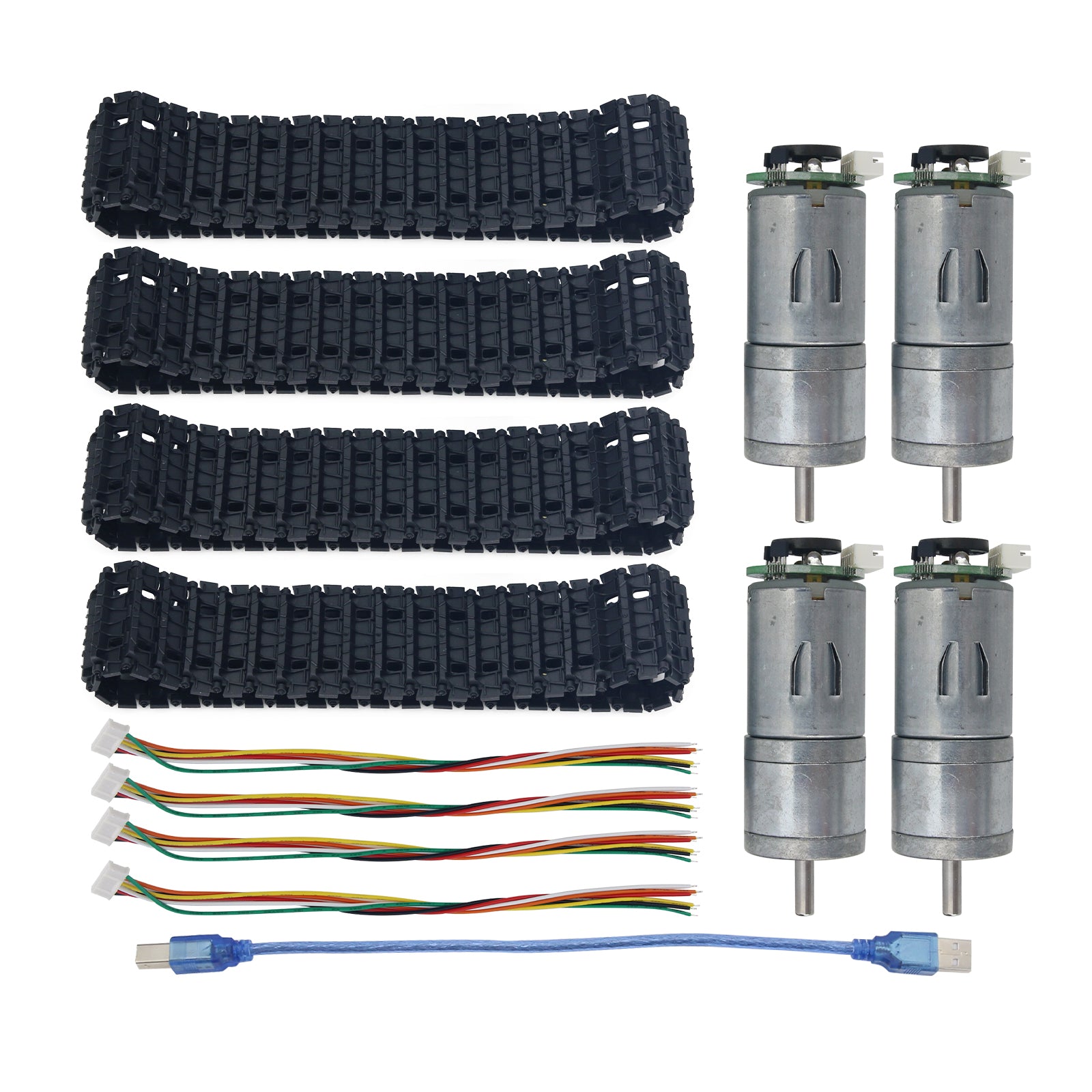4WD Robot Tank Chassis Kit Black Chassis + Joystick Control + 4pcs 12V 300RPM Motors with Encoder