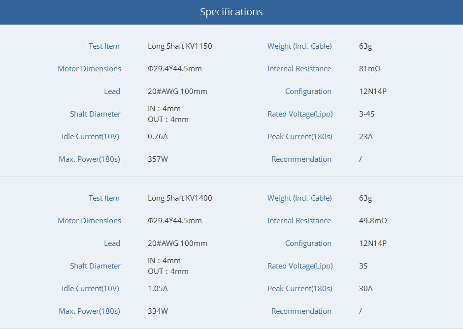 4x T-Motor Brushless Motor Long Shaft 1400KV For Small 3D Trainer Slider (AS2312 KV1400)