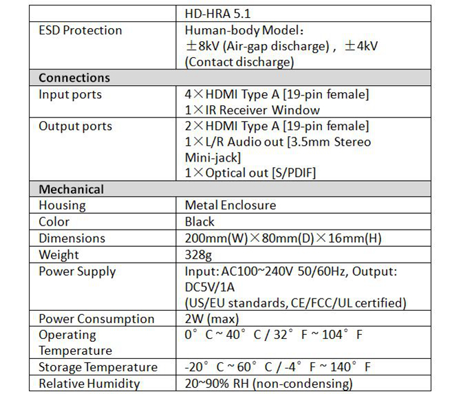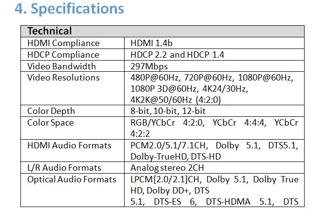 - Supports HDMI resolution the maximum up to 4K2K@50/60Hz (4:2:0).