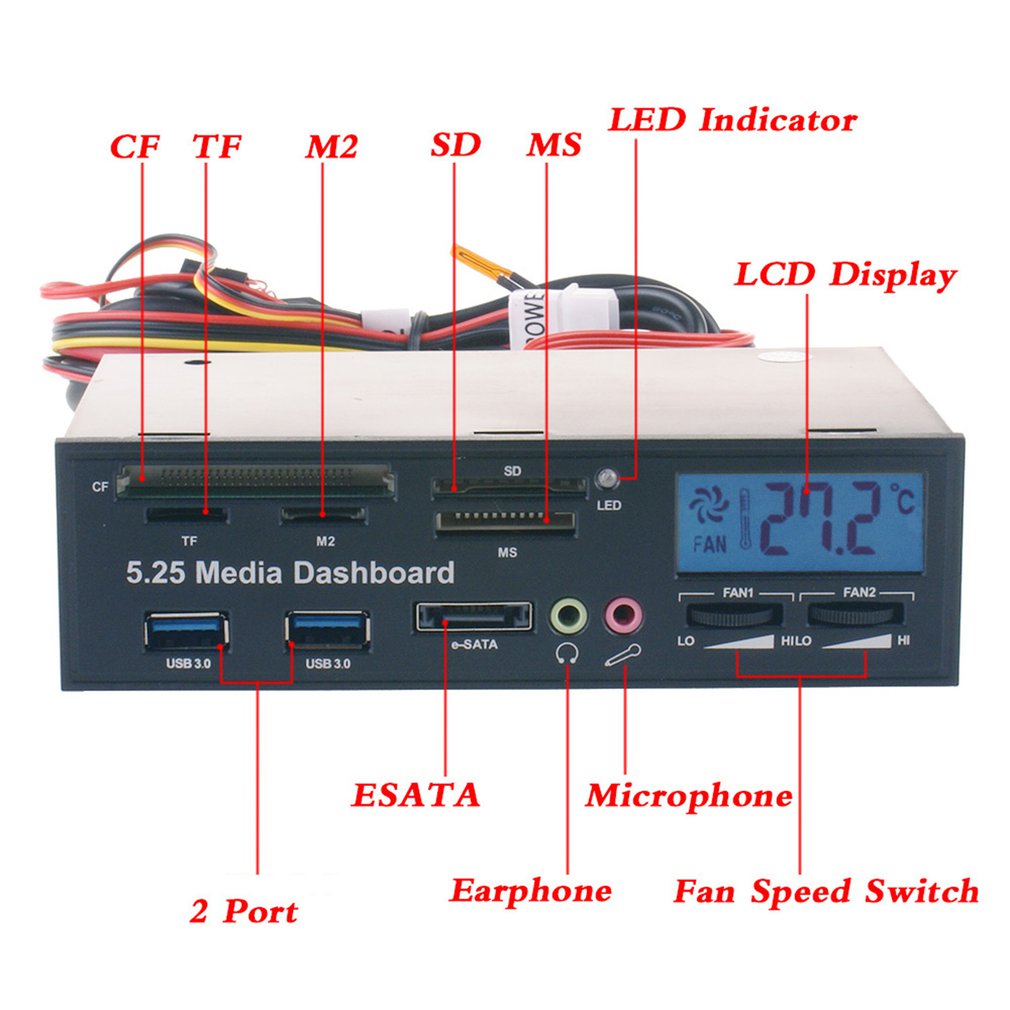 - 5.25'' Media Dashboard Multi-Card Reader USB3.0 Front Optical Drive Panel.