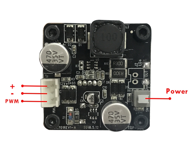 - Control interface: 2 * 2.54 (TTL control switch, PWM control power)