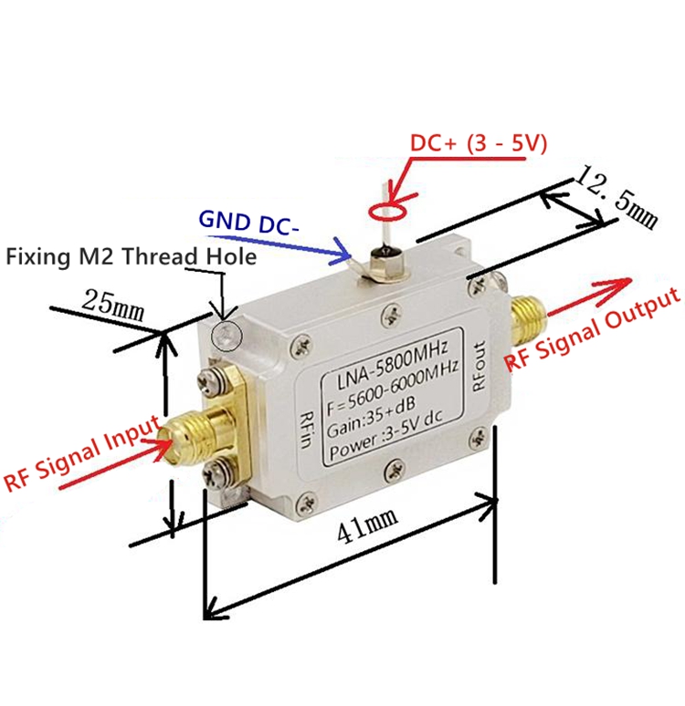 5.6 - 6GHz LNA Low Noise Amplifier 5800MHz Image Transmission 2.4GHz RF Amplifier with SMA Female Connector