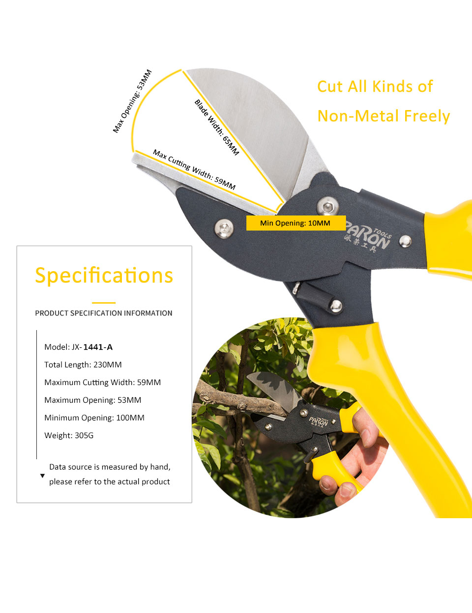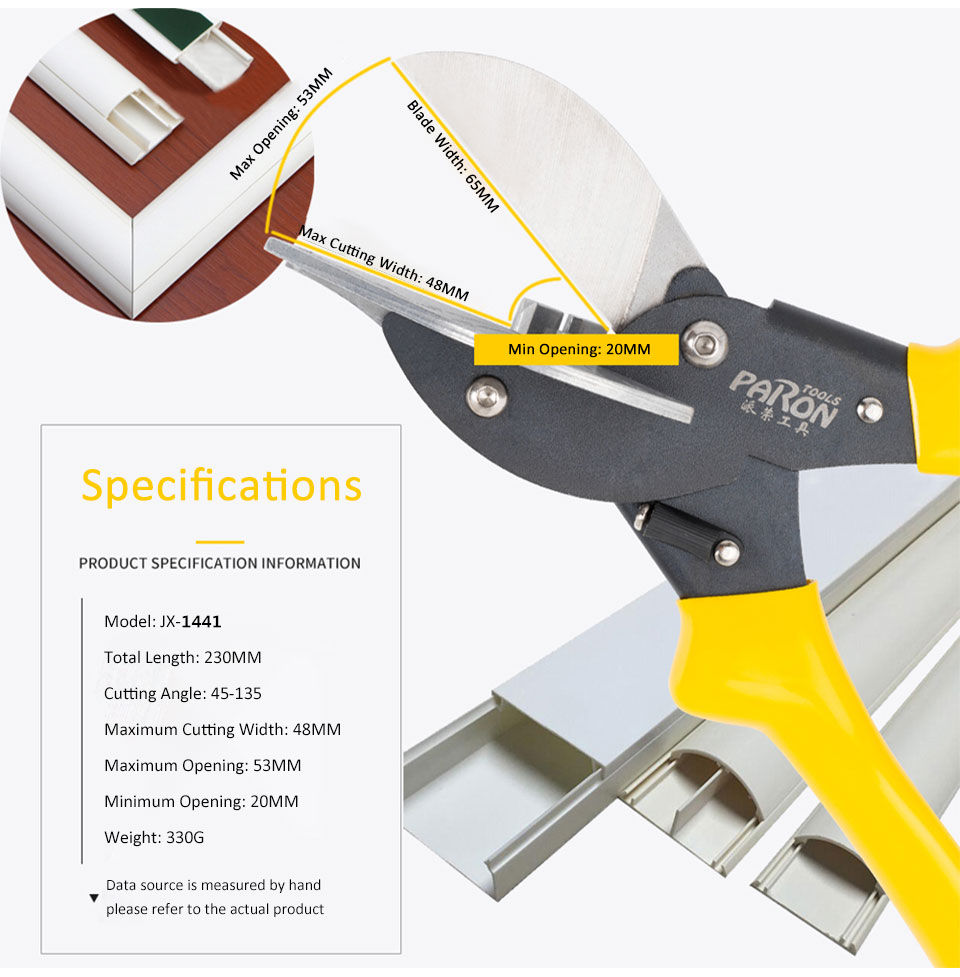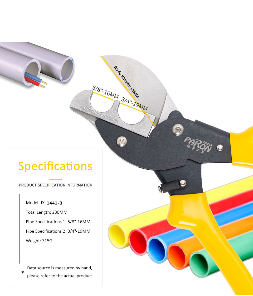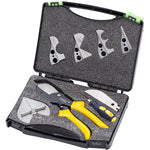 The multifunctional cutting pliers kit (JX-C4115) for wire groove, plastic pipe, garden is refined from special tool steel, with high durability, extremely long service life and convenient operation. The surface of the cutting pliers adopts new technology to achieve high-grade matte black, and the blade adopts an integrated design, which can cut larger diameters. The clamp head mold can be replaced according to needs. It can cut various plastics, lead blocks, thin wood strips, plastic water pipes, line pipes and garden branches, etc. non-metallic The complete set of tools is an essential hand tool set for electricians, carpenters and home gardening.
