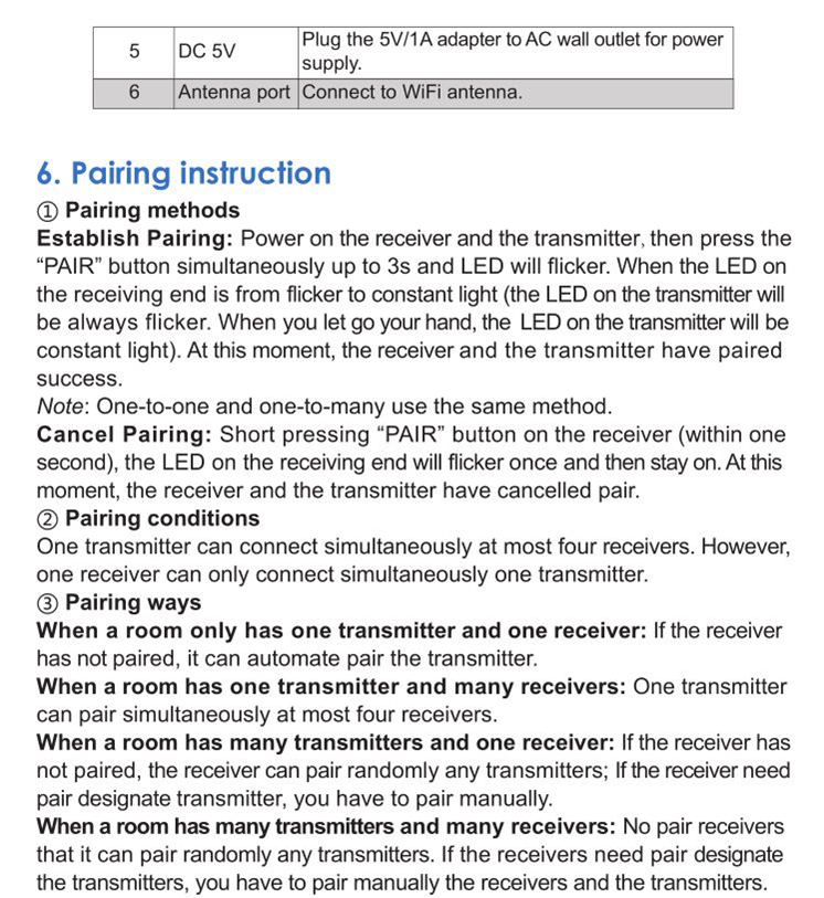 - Transmission distance: One-to-one and one-to-four connect distance the furthest up to 164ft/50m (An open environment without Wi-Fi interference.)