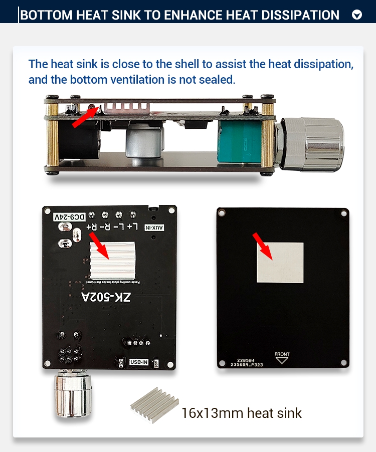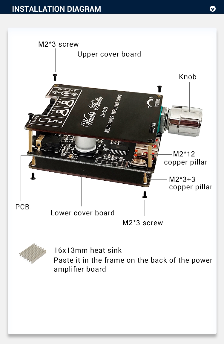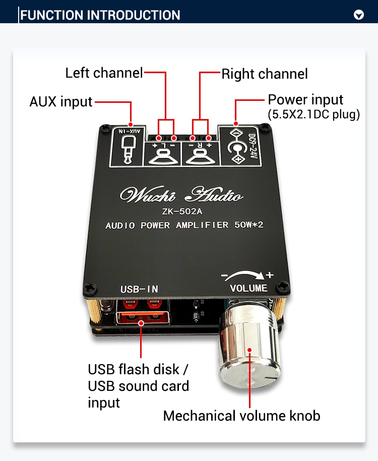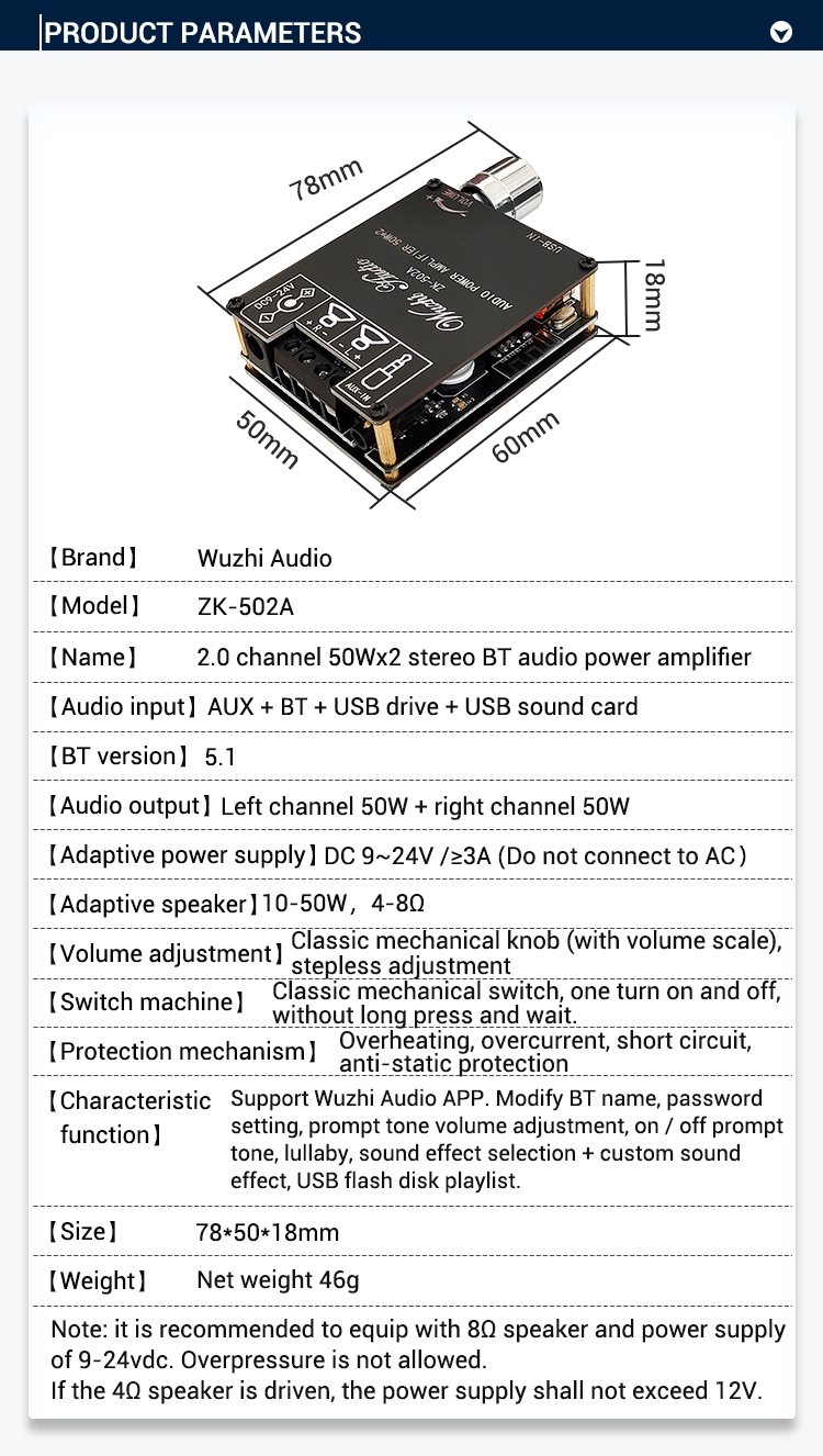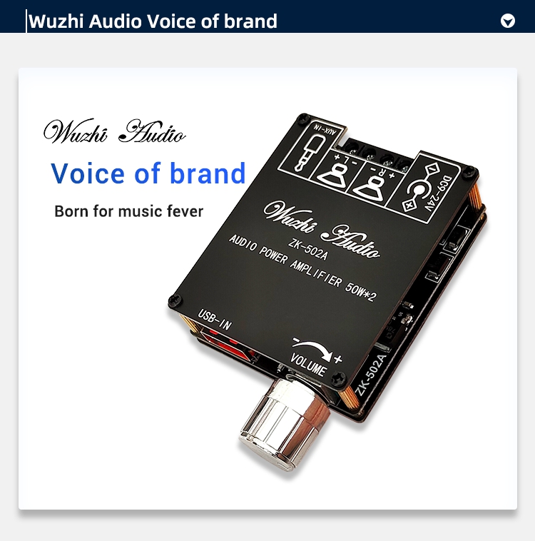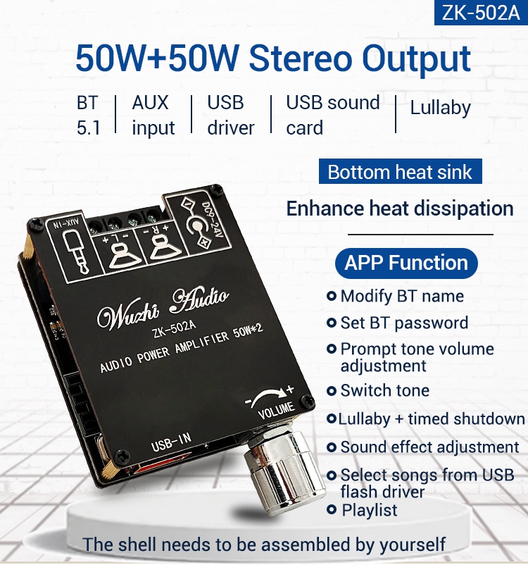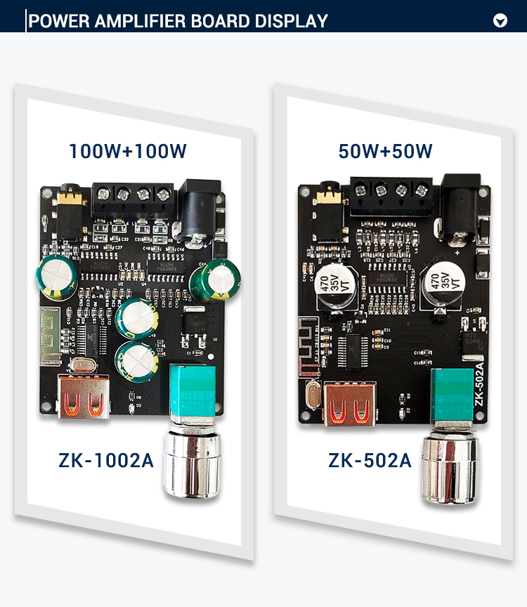 50Wx2 Bluetooth Power Amplifier Board Stereo Two-Channel Audio Power Amplifier Module ZK-502A