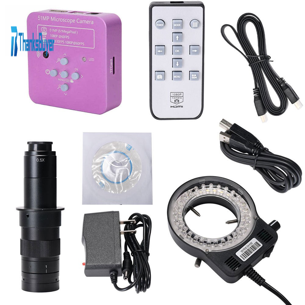 51MP Microscope Camera Industrial Camera 180X C Mount Lens 56-LED Ring Light For PCB Soldering Phone