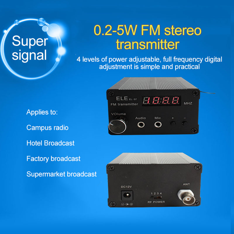 5W Stereo FM Transmitter Wireless Audio Broadcast Radio Transmitter Power Adjustable
